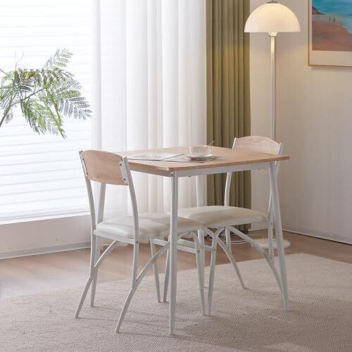 【サイズ】テーブル:幅70x奥行70x高さ75cm チェア:幅41x奥行40x高さ80cm(座面高さ: 45.5cm 座面の厚さ:4cm) 【耐荷重】テーブル:60㎏ 椅子:130㎏ 【素材】テーブル:合成樹脂化粧繊維板(PVC)、スチール(フレーム)、粉末塗装(スチール部分) 。 チェア:張り地:プロ仕様 PUレザー / 座面内部:ウレタン / 脚部:スチール(クロームメッキ塗装仕上げ)。 【カラー】 テーブル:ブラウン/ナチュラル チェア:ブラック/ホワイト 【重量】約16.8kg 【梱包重量】約18.8kg 組立品/完成品: 組立品