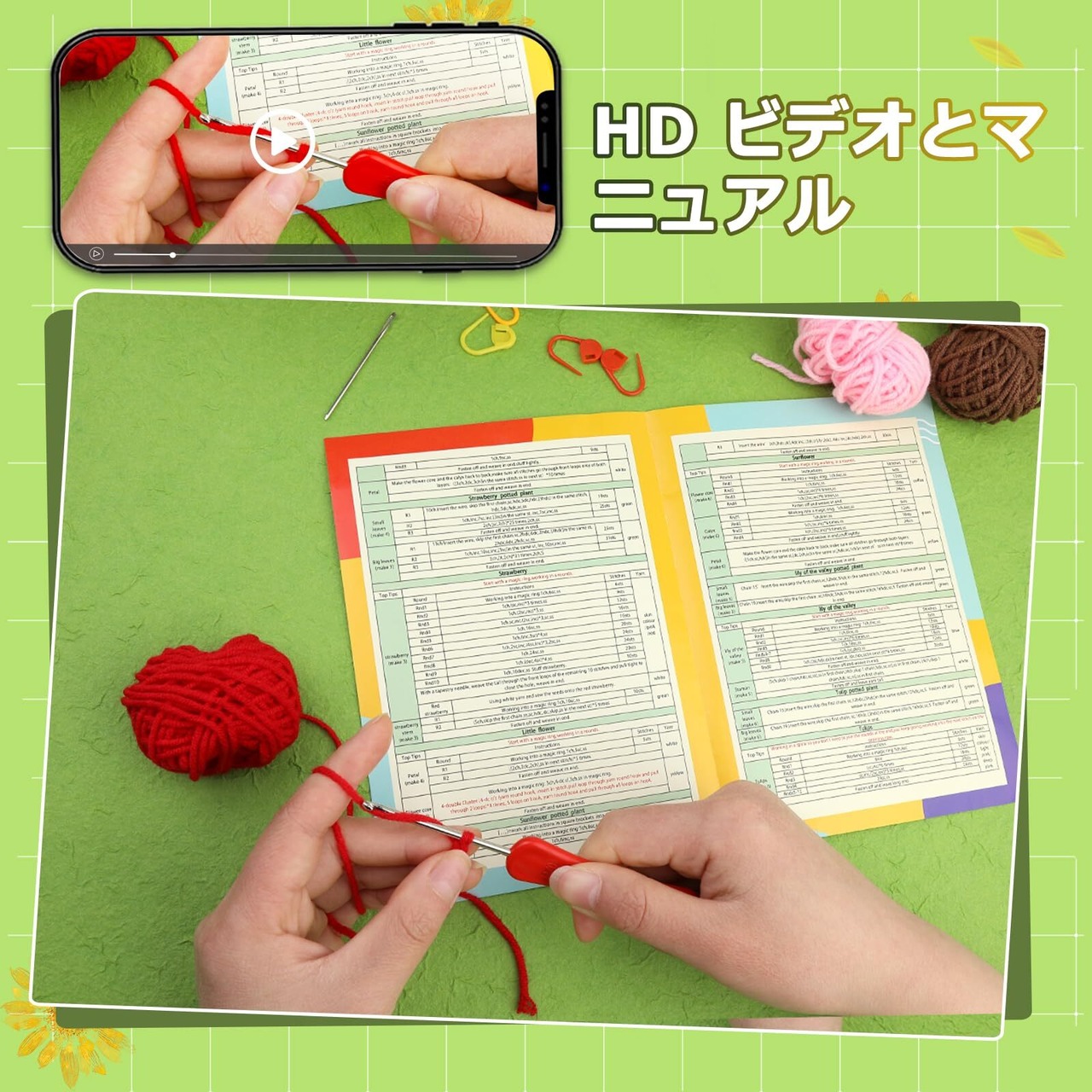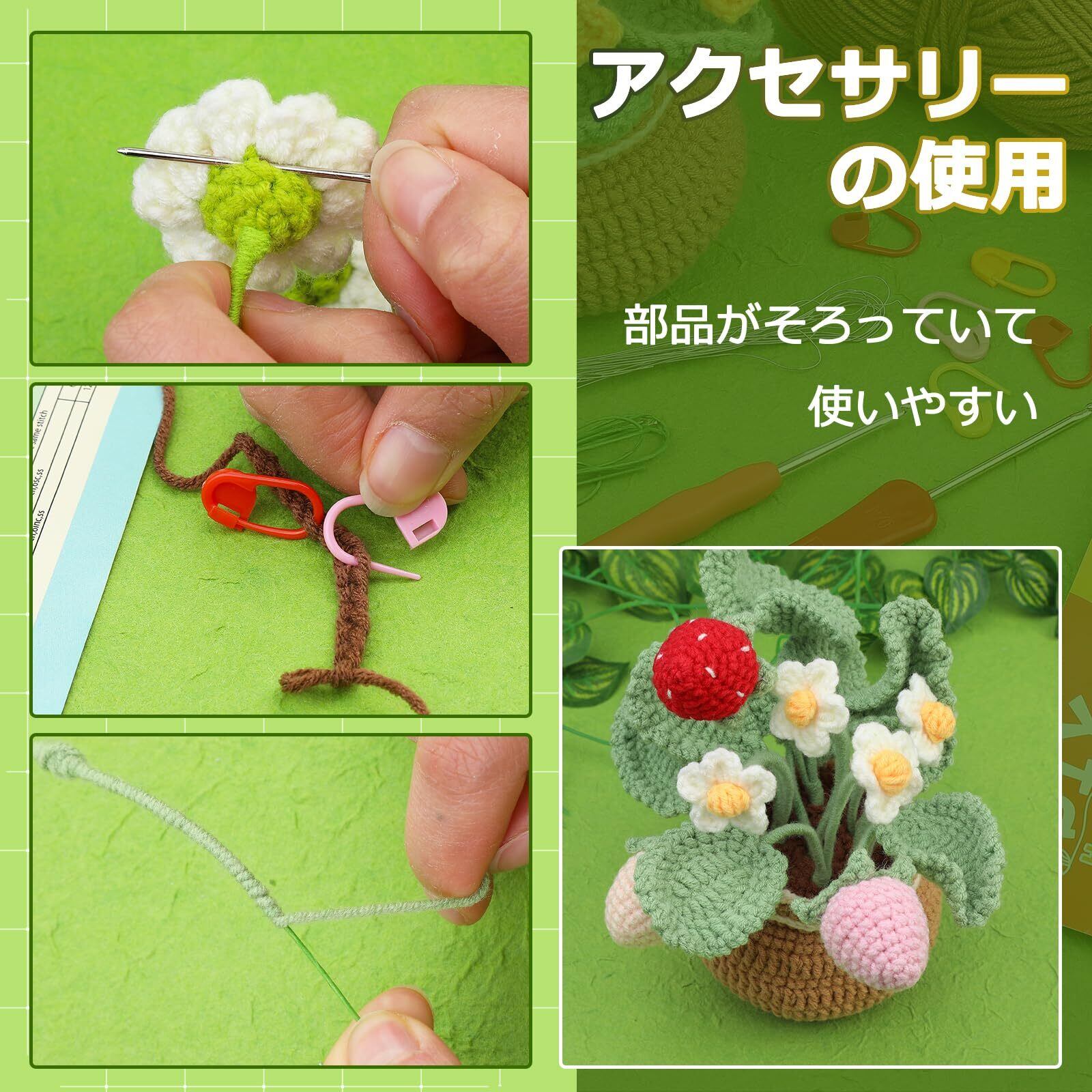 RMTIME 初心者向けのかぎ針編みキット、いちごかぎ針編みキット、初心者向けかぎ針編みスターターキット、ステップバイステップのビデオ説明付き、初心者と大人向けのかぎ針編みキット | BASE SHOP