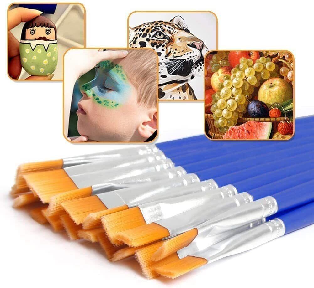 絵筆 筆 ブラシ 平筆 塗装 水彩画 油絵 アクリル画 ペイント 60本セット (蓝色平筆, 12.5cm)
