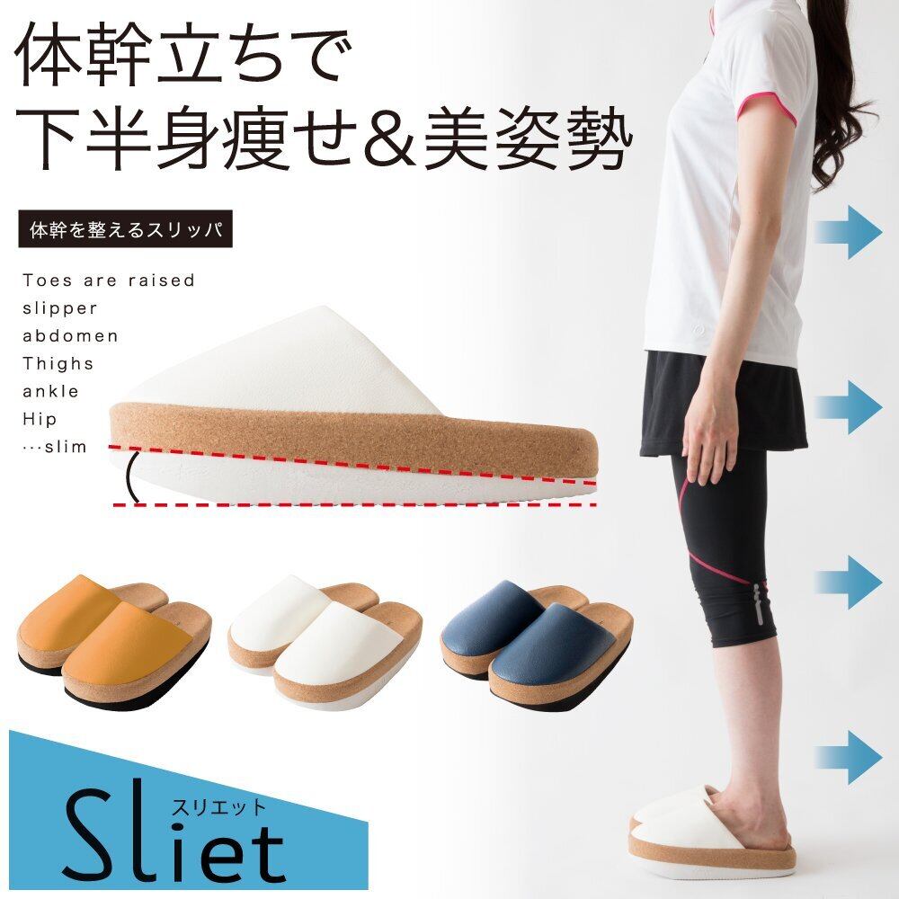 スリエットは正しい姿勢をキープすることで、筋肉を使い体幹を鍛えるスリッパです。自宅でスリッパとして履くだけなので、日常に取り入れやすく習慣化しやすいです。