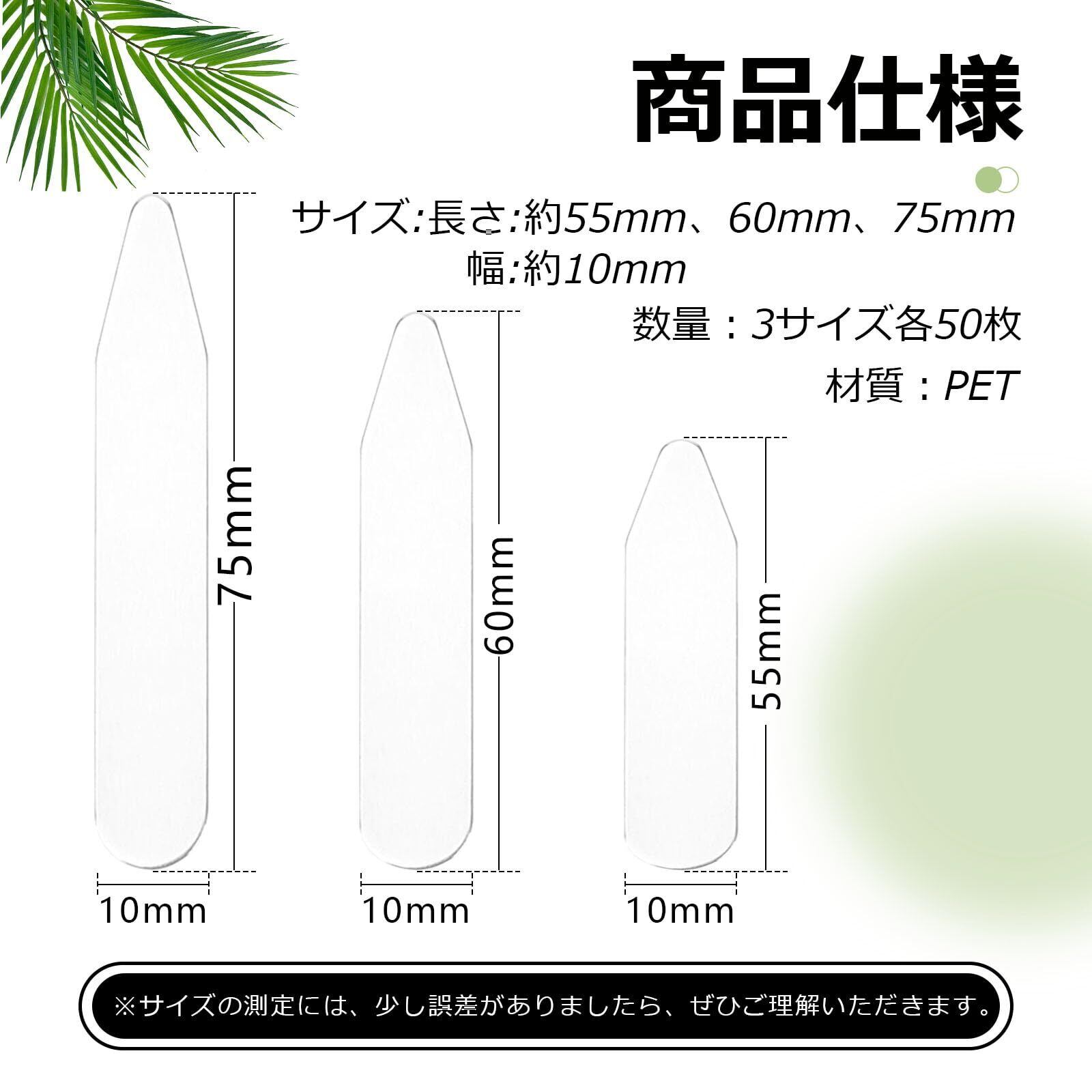 PureSino カラーキーパー カラーステイ プラスチック ワイシャツ 襟 襟芯 クリア 型崩れ防止 長さ50mm、60mm、70mmの3サイズを各50枚