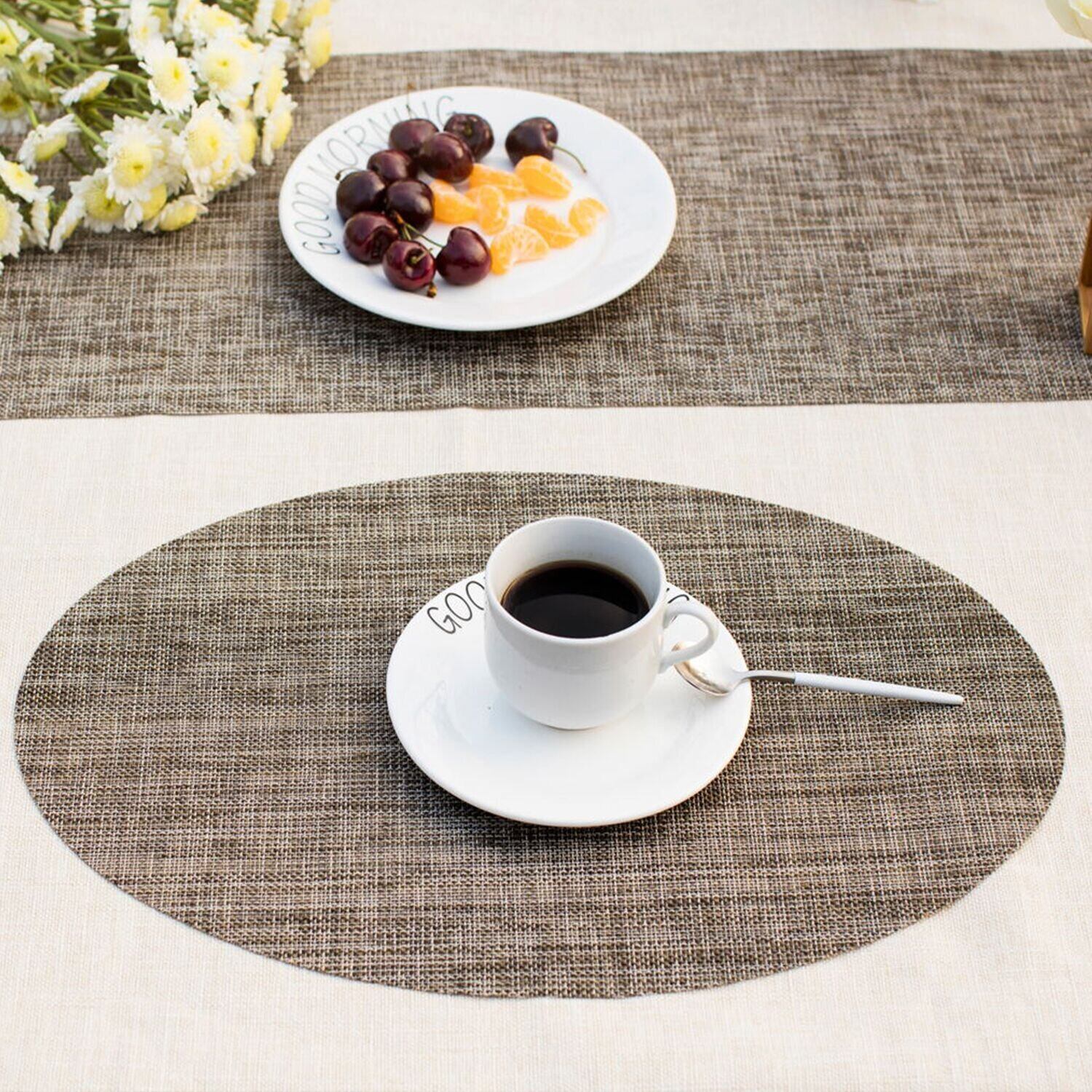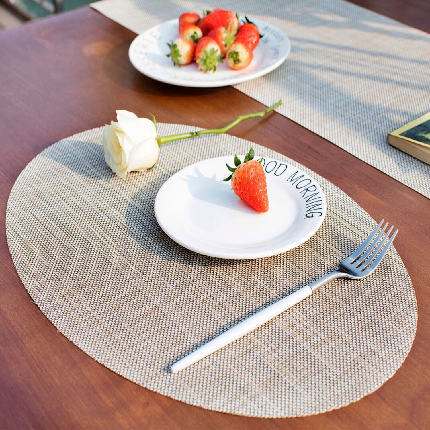 Meihan ランチョンマット プレースマット テーブルマット 楕円形 オーバル 撥水 防汚 断熱 滑り止め 飾り 食卓 上品 雰囲気 レストラン用 4枚セット