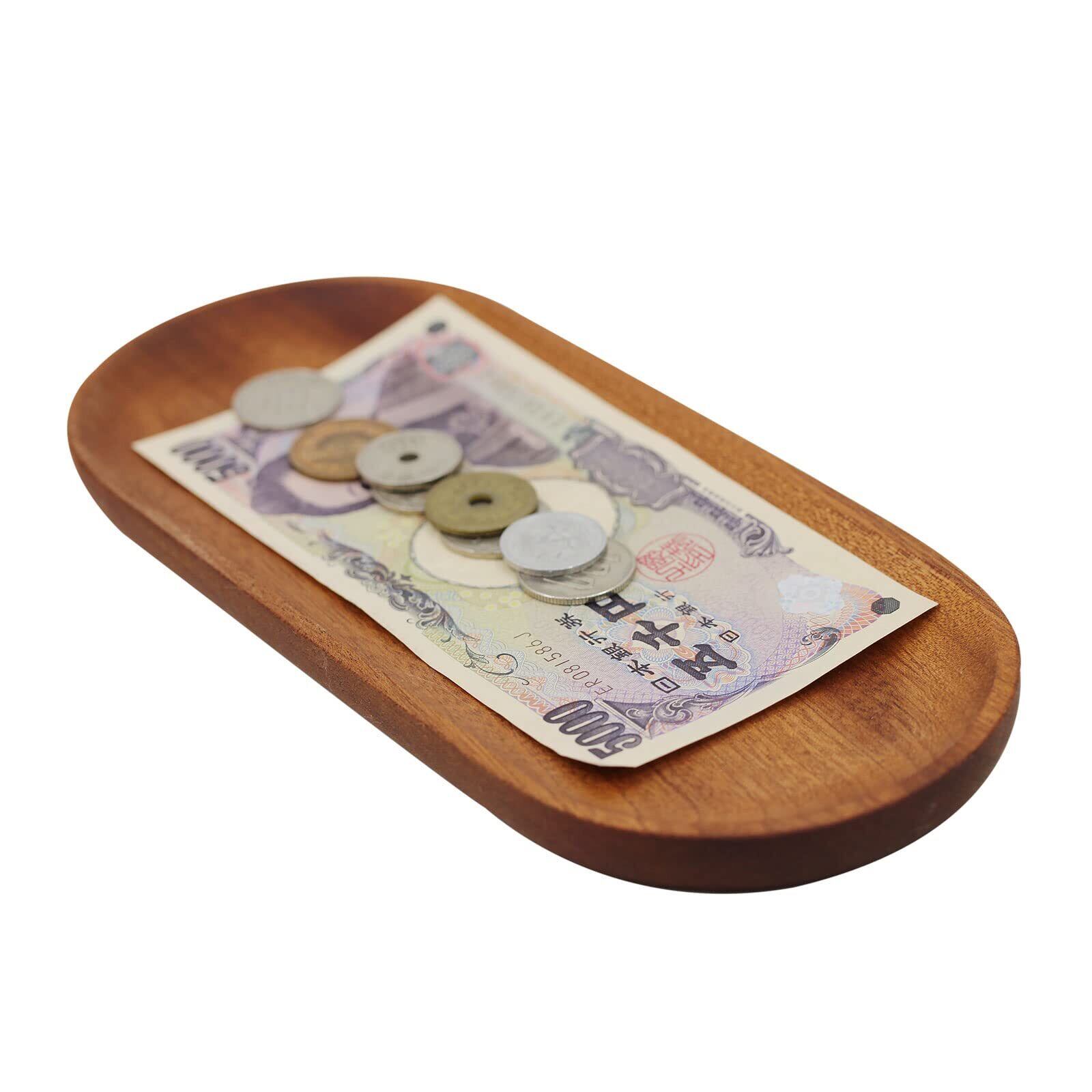 自然な色味のキャッシュトレイが高級感漂う雰囲気を演出します。垢材を削り出して作った、高級感のある木製キャッシュトレイ。木の紋が天然で、各トレーの色が多少異なる場合がございます。