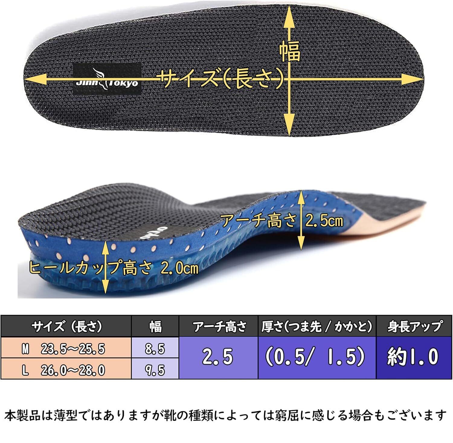 [理学療法士監修]JINN TOKYO インソール 理学療法と人間工学に基づいた衝撃吸収反発弾性 ユニセックス・ユニバーサルデザイン Blueプレミアム (快適インソール-L(26~28))