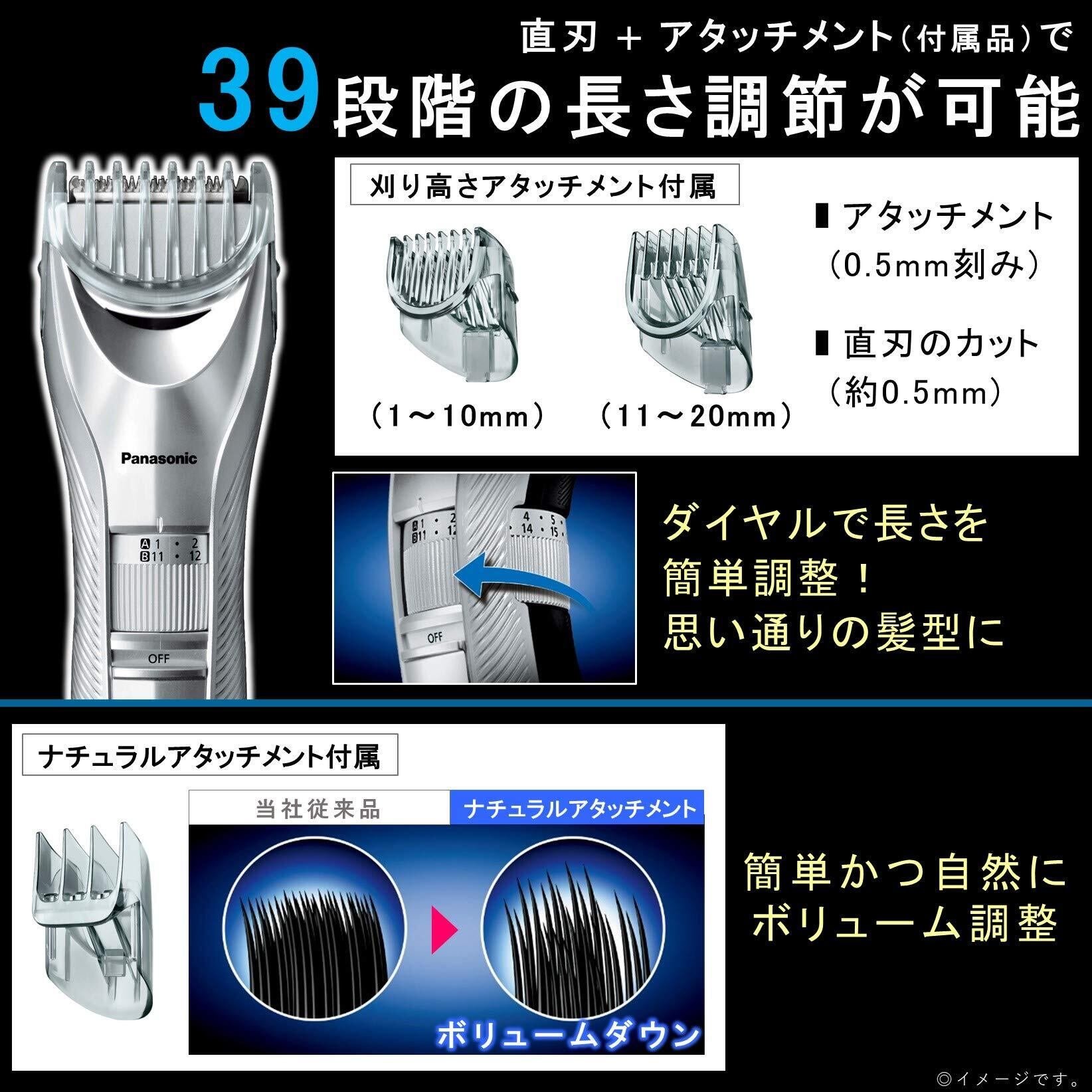 ※1 当社2011年発売ER-GC50に対して刃を肌に垂直にあてたカットにおいて、カット後の毛の短さとの比較(当社調べ、当社独自基準に基づく)。