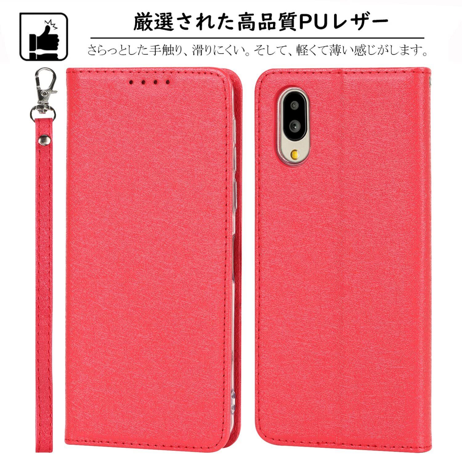 Elick シンプルスマホ6 ケース 手帳型 薄型 高級PUレザー SoftBank シンプルスマホ6 A201SH ケース 手帳型 マグネット式 スタンド機能 カード収納 ストラップ付き シンプルスマホ 6 ケース カバー レッド