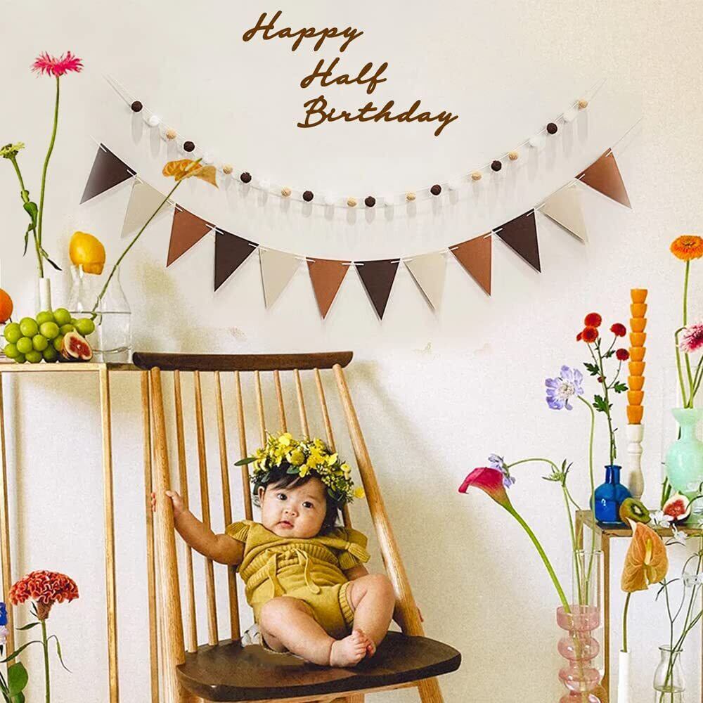 1/2歳を迎えた赤ちゃんの写真をおしゃれに撮影- 誰でも簡単に飾り付けできるオールインワンセット、組み合わせに迷うことはもうありません インスタ映え間違えなしの写真が撮れます。壁に貼り付けて、お食い初めのお祝いの飾りに、そして温かみのある雰囲気です。