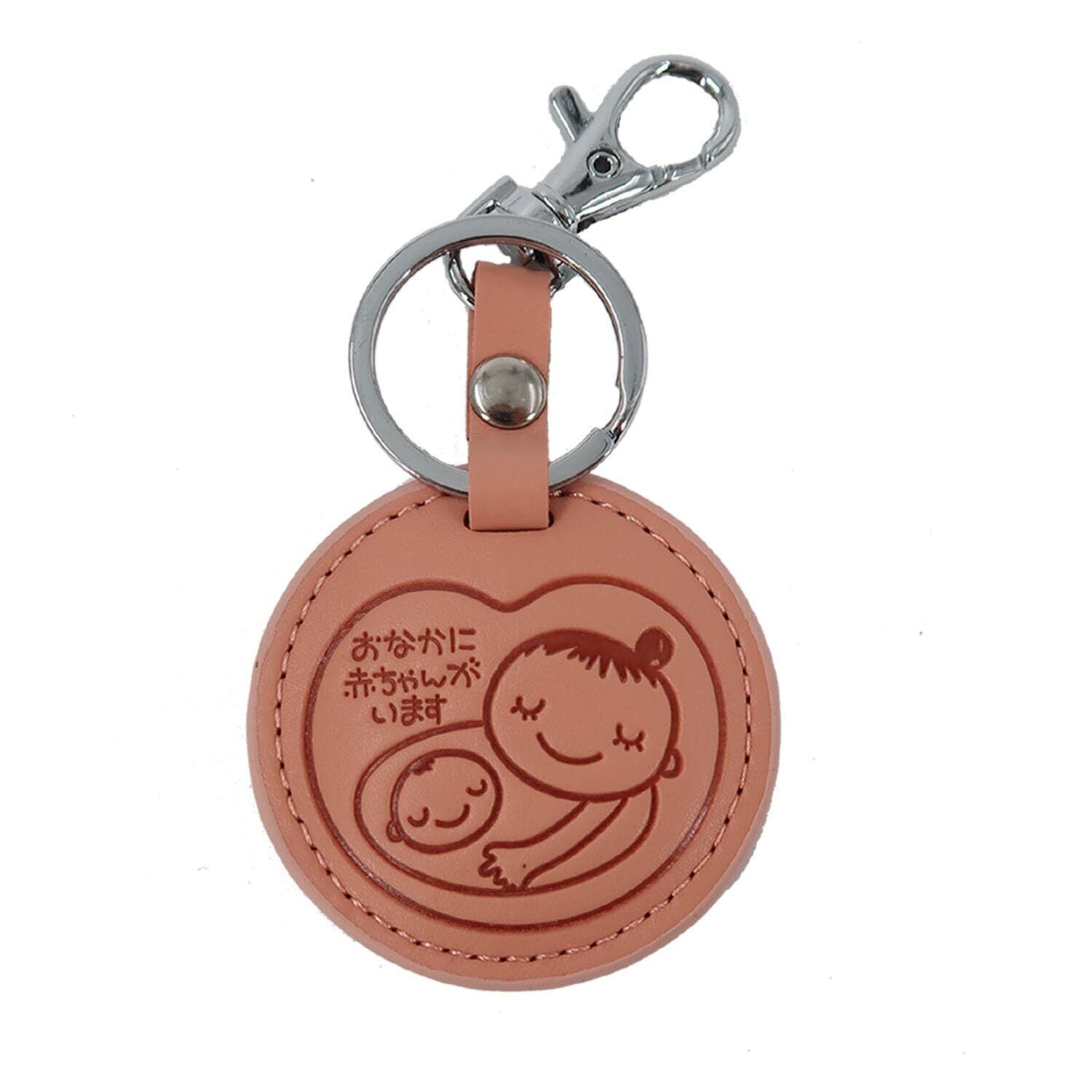 [wonydojey] 本革マタニティマークキーホルダー 両面仕様 レザー キーホルダー ギフト プレゼント お祝い ベビー 革製 キーチェーン ピンク
