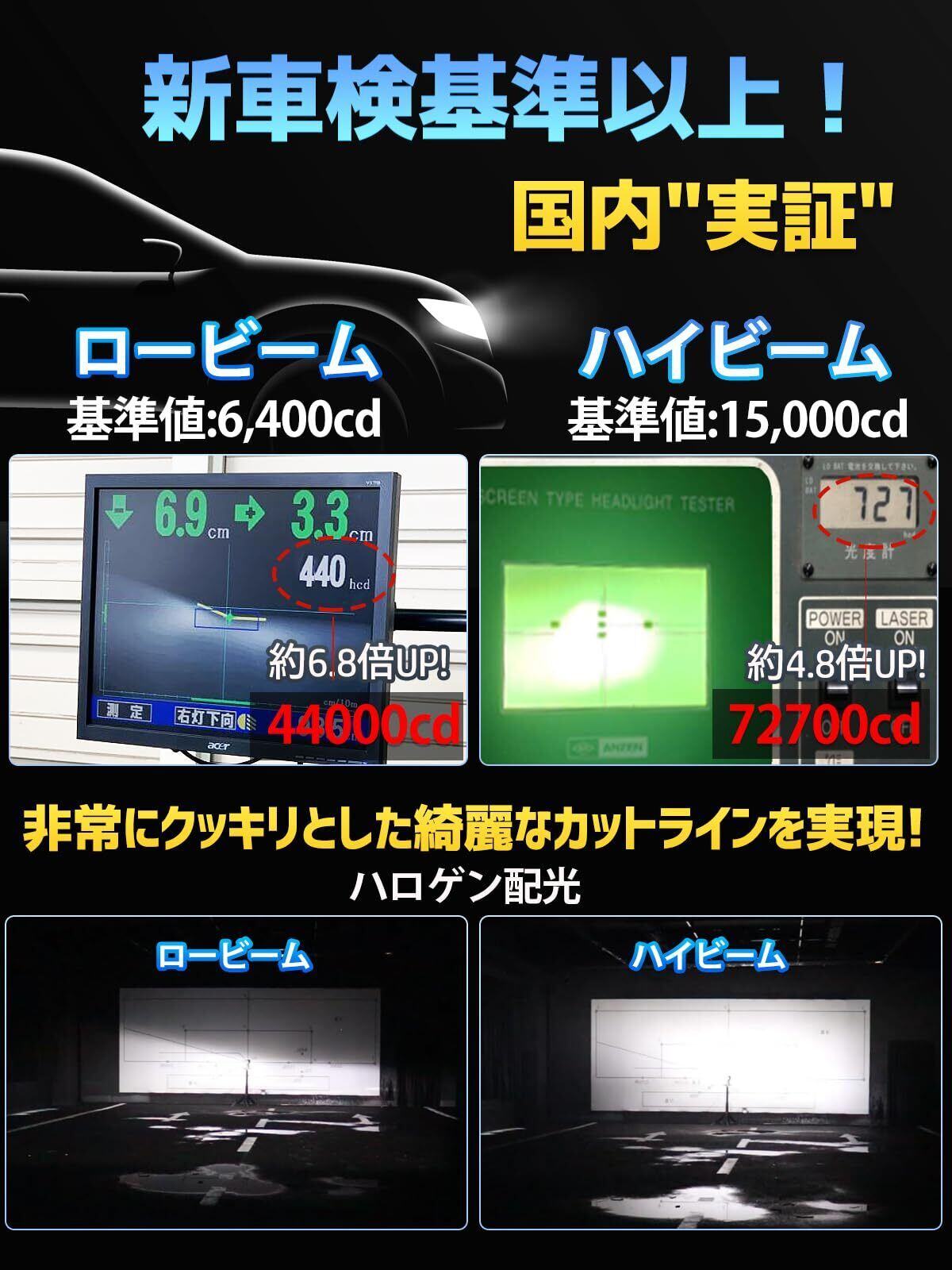 【新車検対応・基準以上】改良されたh4ledライトは、1mmの極薄両面基板技術による配光で光量最大化を実現!車検OK、光量は車検基準の6倍以上です!ハロゲンの照射原理で、光を集中させ照射強度を増すことで綺麗なカットラインを再現!明るいがまぶしくはない!車両を行き来する視線を妨げない!6500Kホワイトledヘッドライトで明るさ倍増と視認性向上を実現しました。車検対応の3つの基準を満たしています!※ご注意:車検に関しては、地域により検査員の基準が異なる場合がございます。