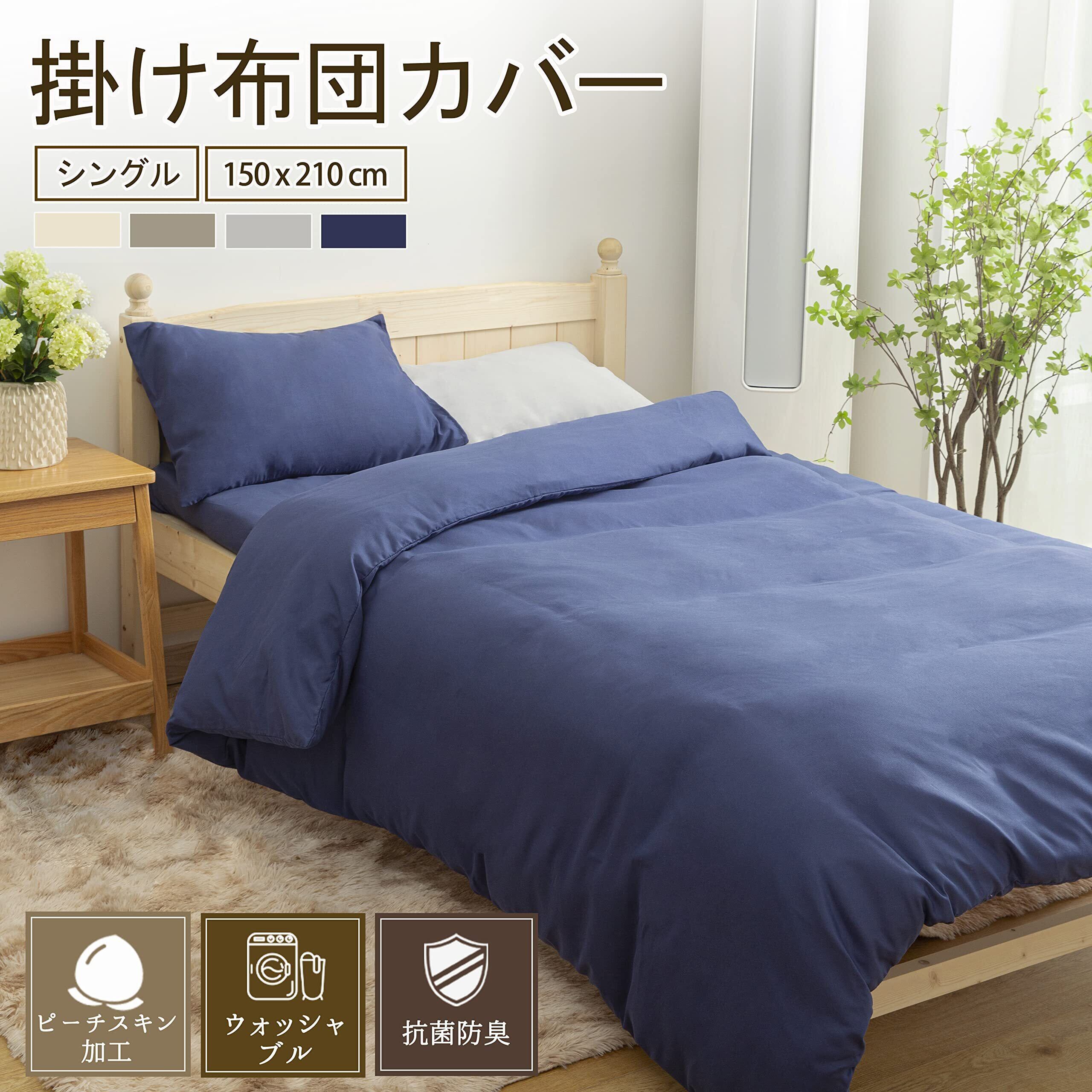 掛け布団カバー シングル 洗える 心地よい肌触り オールシーズン 150×210cm 吸水速乾 ふとんカバー 抗菌防臭 ネイビー