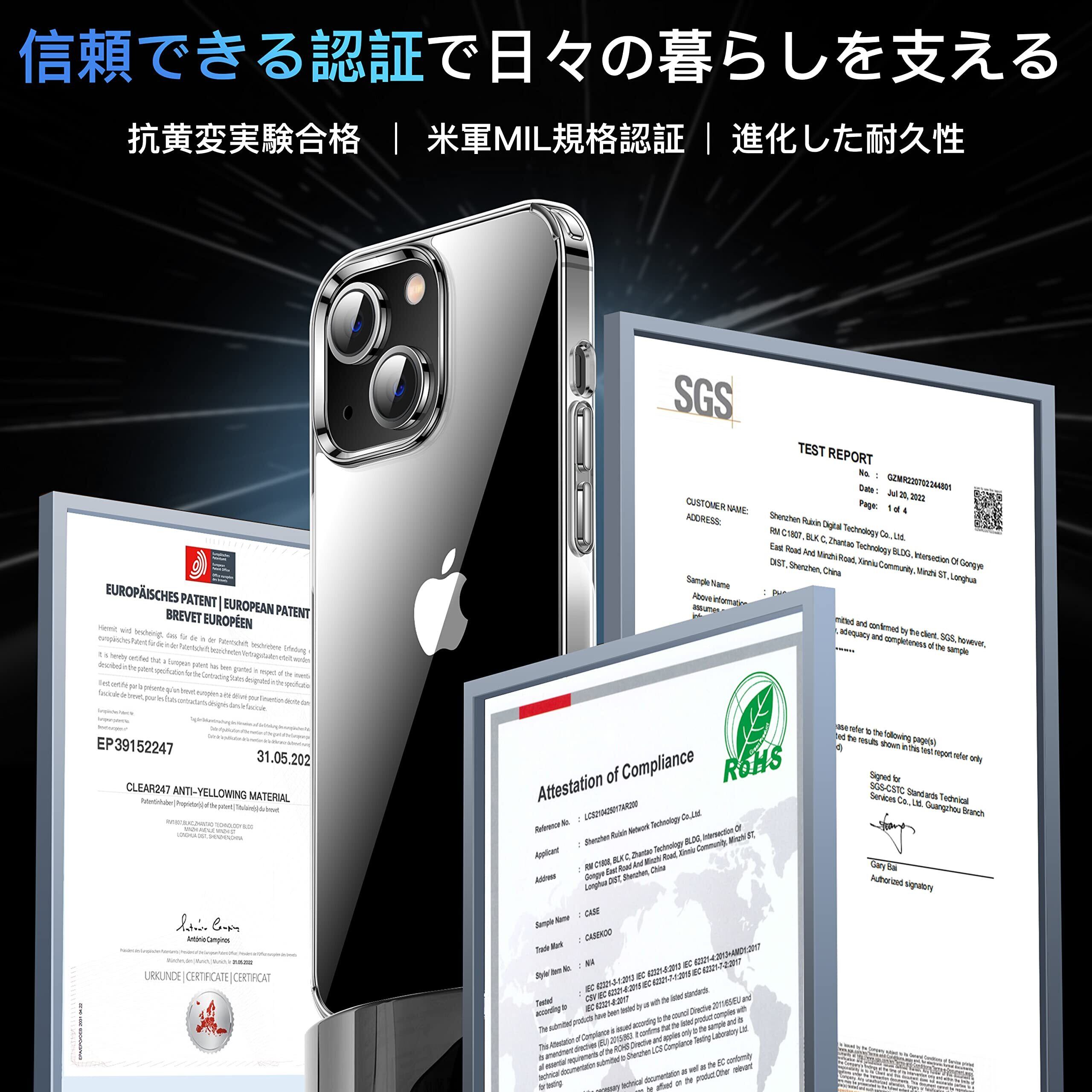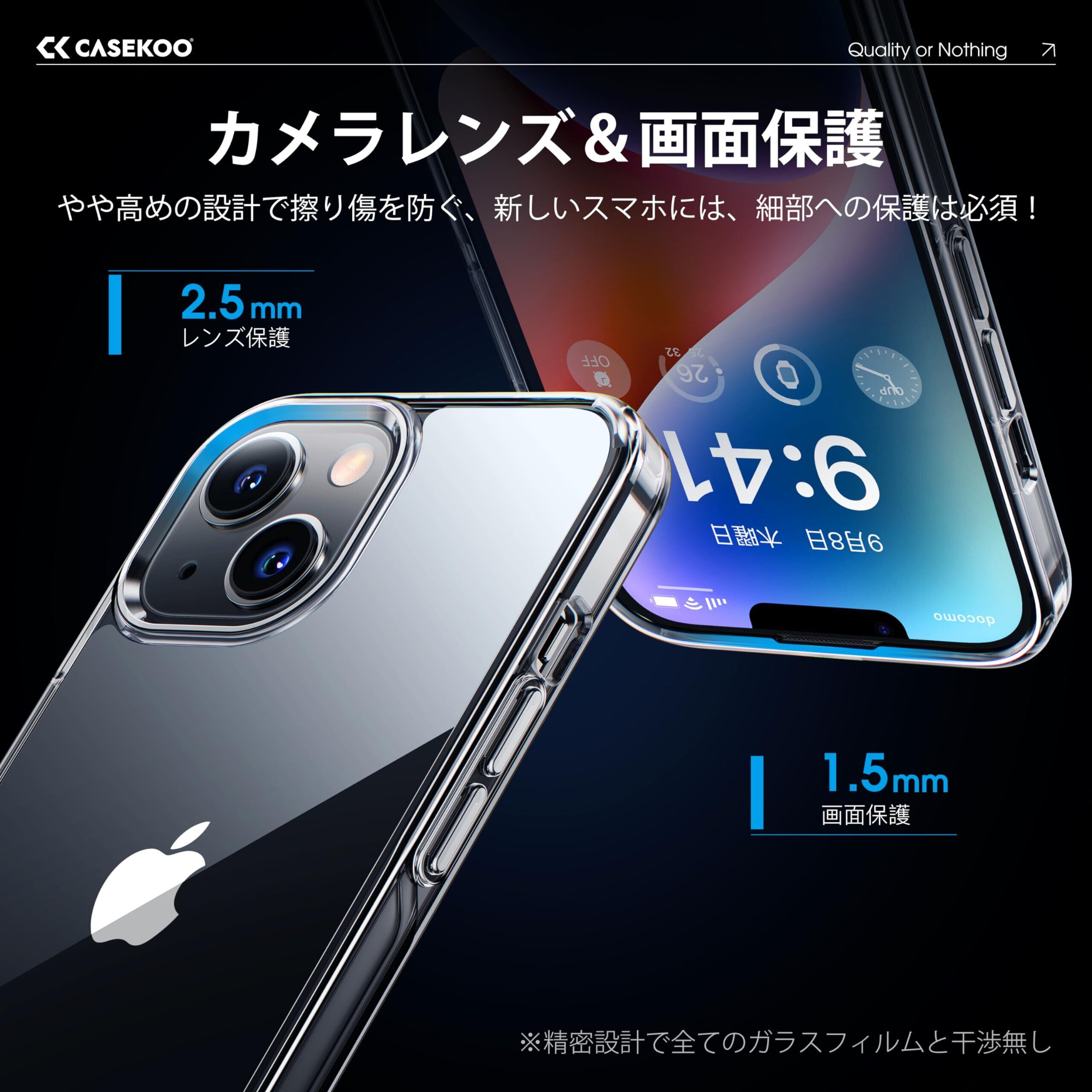 【極々透明感・2025年革新耐黄変技術】CASEKOO iPhone14 / 13 用 ケース クリア 耐衝撃 米軍MIL規格 耐久性 カバー ストラップホール付き ワイヤレス充電対応 アイフォン14 / 13用 携帯カバー 6.1 インチ ケース(クリア)