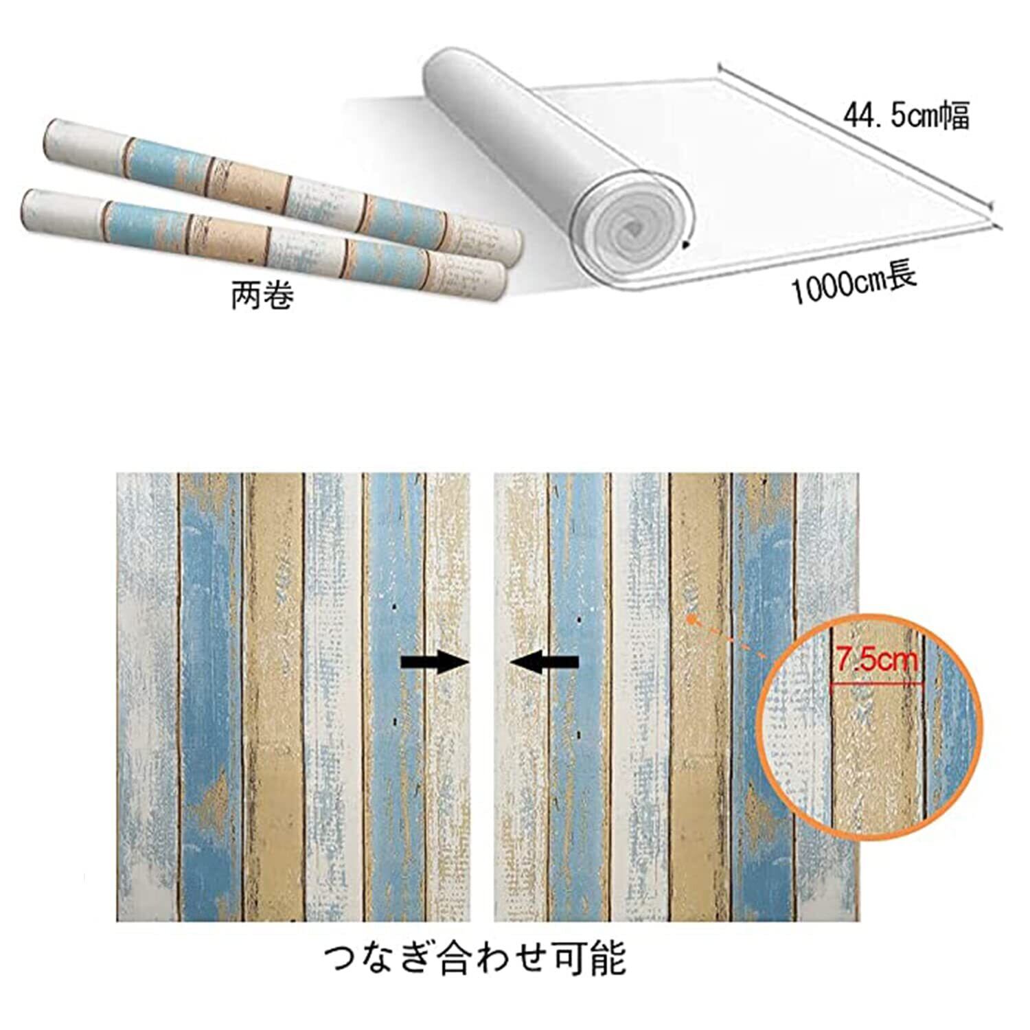 壁紙シール 木目シール 地中海風(44.5CM×10M×2枚)リメイクシート はがせる おしゃれ カッティングシート はがせる壁紙 防水 湿気を防ぐ リビングルーム 浴室 北欧 DIY リフォーム シート 壁紙 (木目調 地中海風)