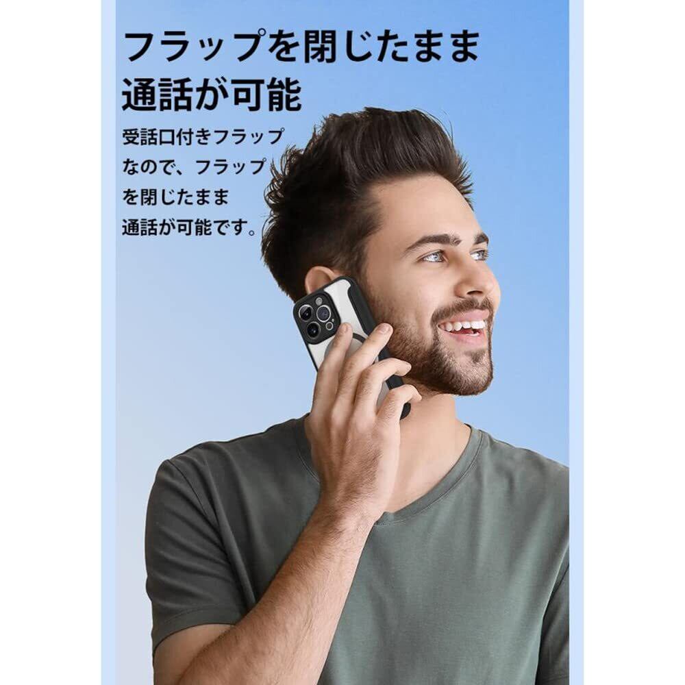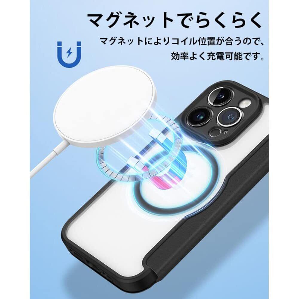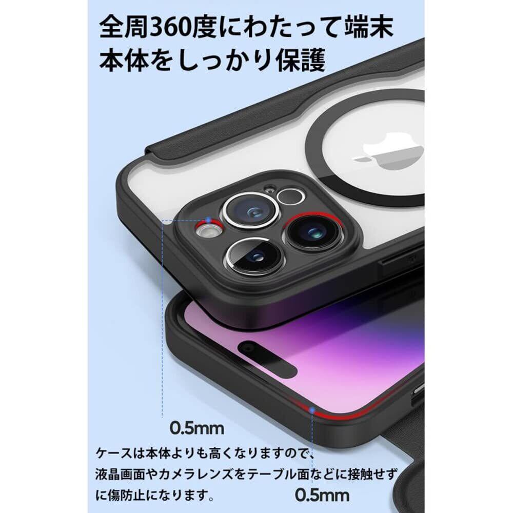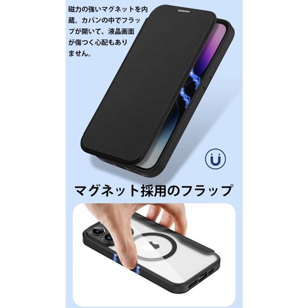 iPhone 14 Pro ケース Magsafe 対応 手帳型 クリア 耐衝撃 内蔵マグネットスマホカバー アイホン 14 プロ カバー 財布型 背面透明 Qiワイヤレス充電対応 iPhone14Pro 手帳型ケース カード収納 かわいい おしゃれ スリム 薄型 軽量, ブラック