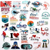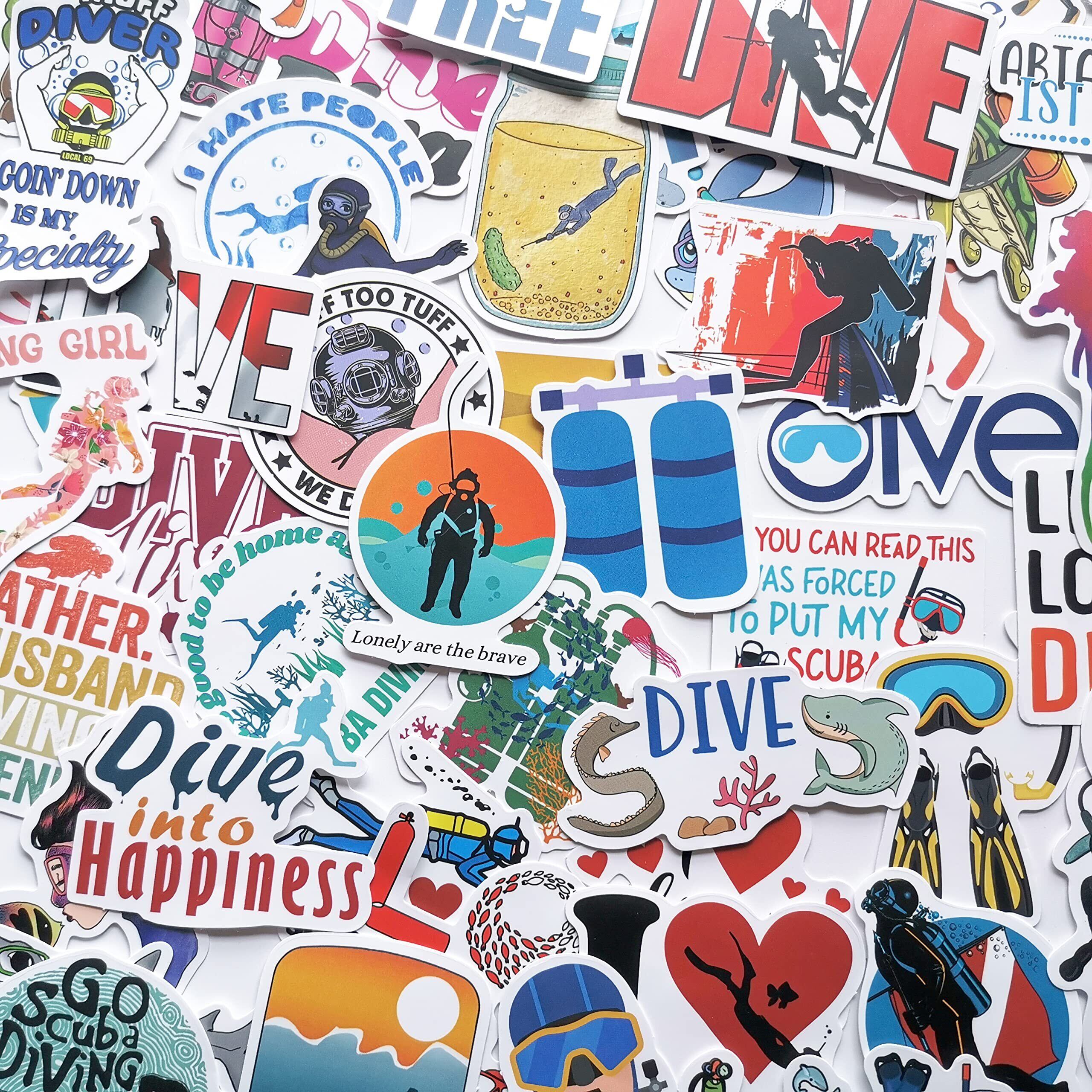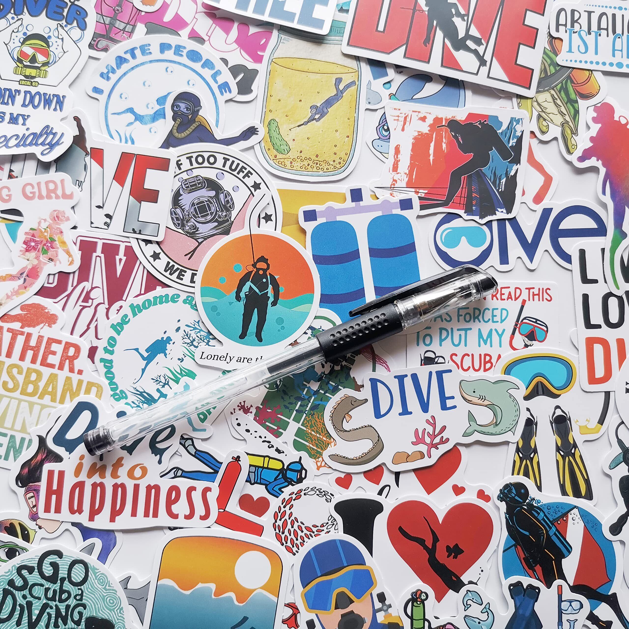 スキューバ ダイビングステッカーチューン防水 バラエティダイバーデカール マリンスポーツシール 50枚セット