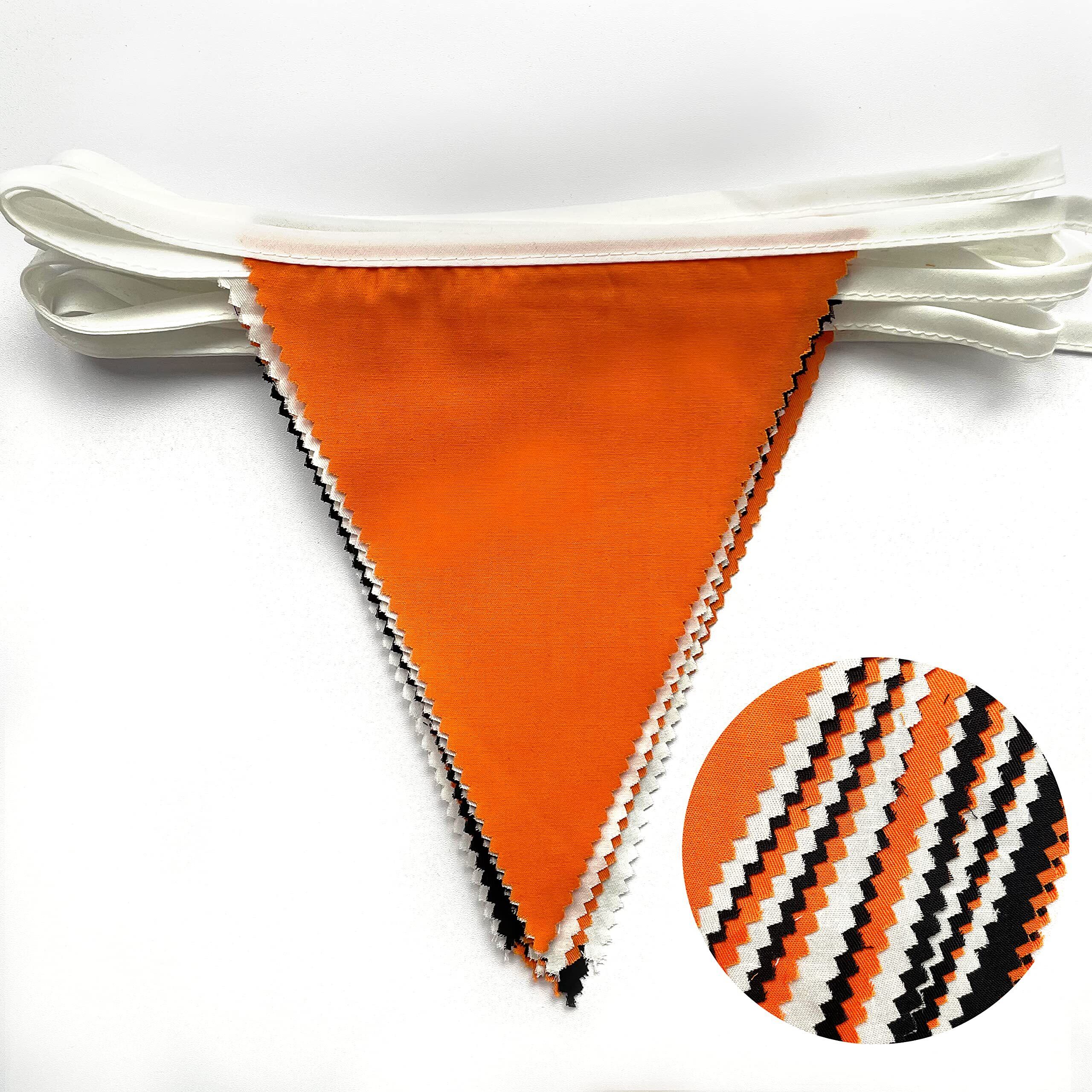 PinkBlume オレンジ黒と白三角旗 約10m長 オレンジ ブラック 白 のグラデーションカラー ペナント トライアングル 誕生日の飾り パーティーの装飾 部屋の装飾 コットン 布 三角形 幸せな感謝祭の日収穫の パーティー 誕生日子供部屋の装飾 写真の小道具 卒業 壁飾り ハロウィーン 記念日 結婚式 バースデー パーティー装飾 水洗い可能
