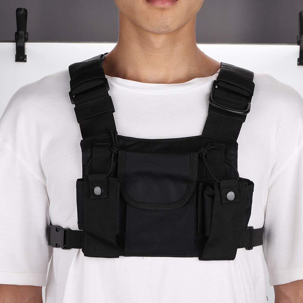 ラジオショルダーホルスターチェストハーネスホルダーベスト、消防および軍用の高品質トランシーバーダブルチェストハーネスフロントパックポーチ