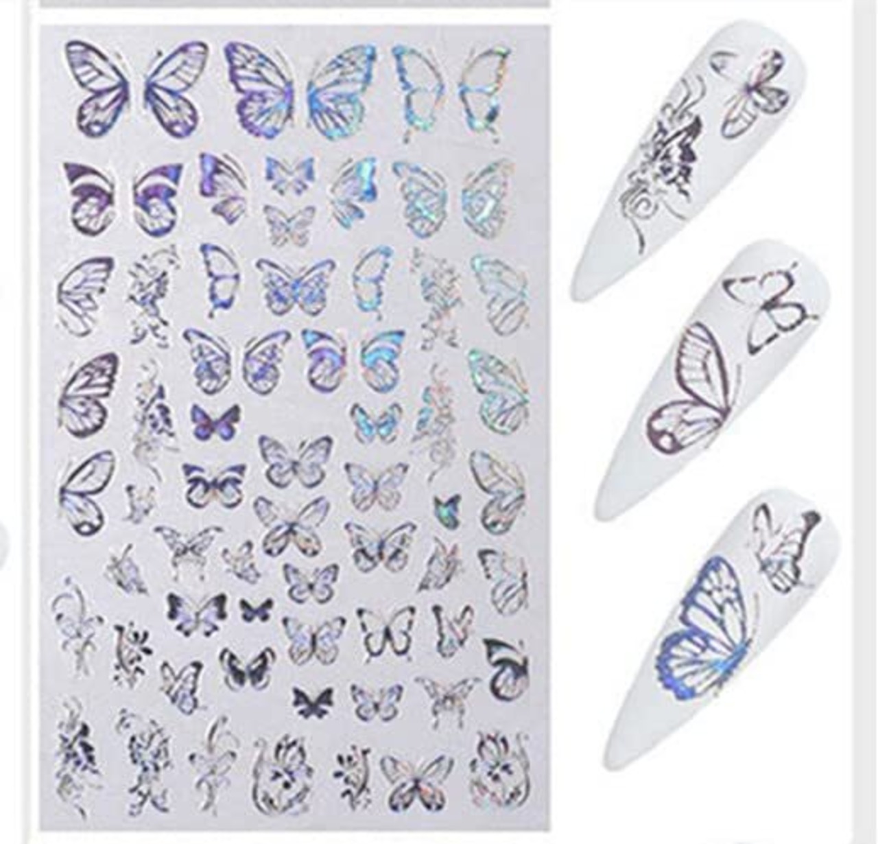 4枚 蝶々 3D レーザー ゴールド シルバー ネイルステッカー シール ネイルデコ セルフネイル ネイルアート