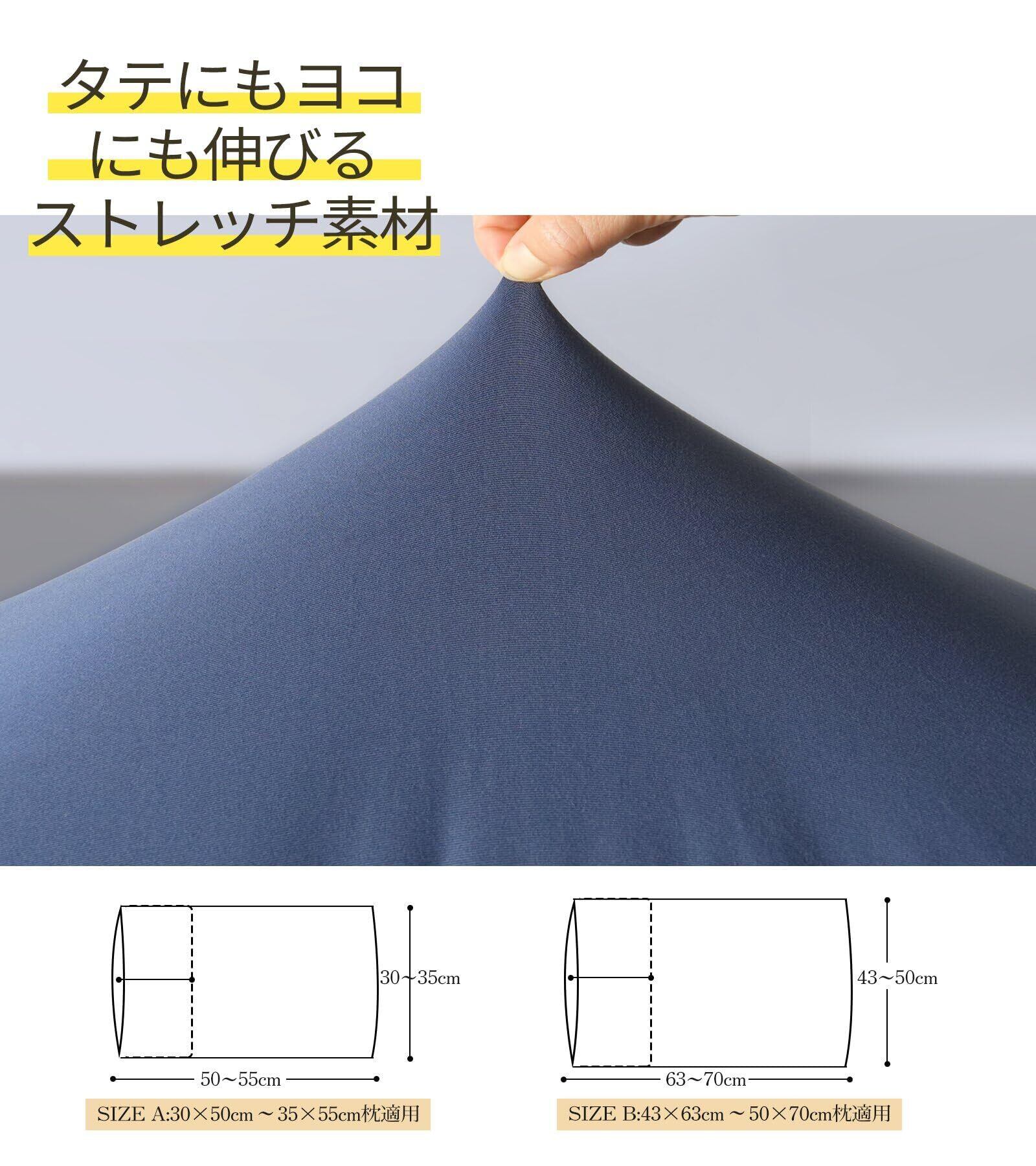 【よく伸びる枕カバー】生地に伸縮性があり、着脱がとっても簡単です。ヨコもタテもよくのびる素材なので様々なかたちやサイズのまくらに対応できます。異形枕にもぴったりフィットします。