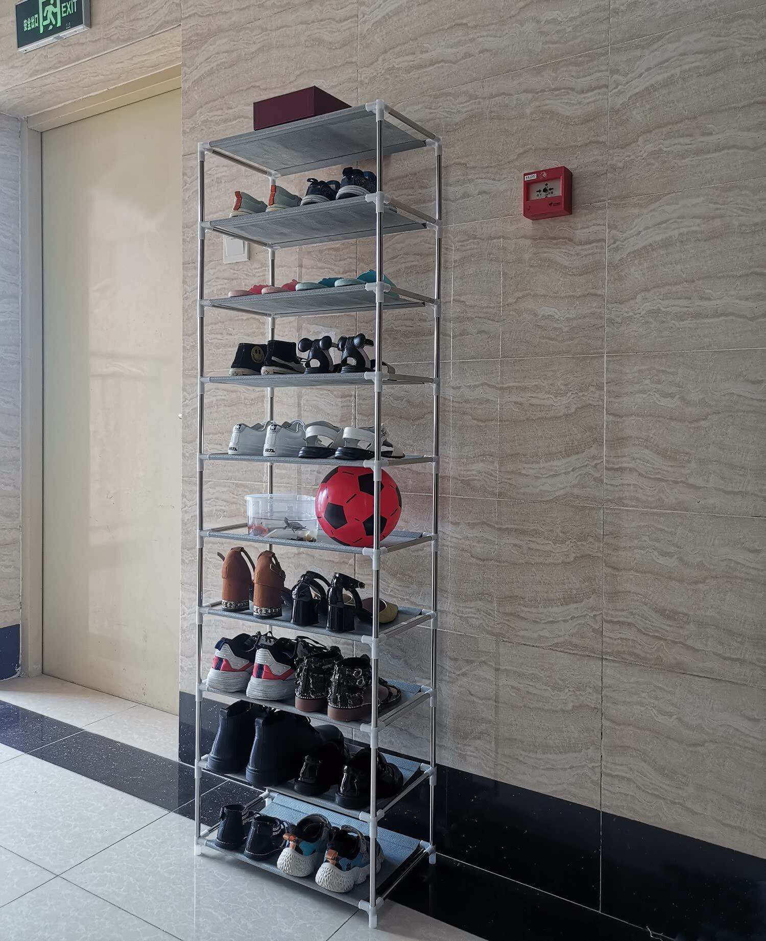 【組立簡単】 スチールパイプをジョイントに差し込むだけで(説明書付き) 。棚はハイヒール、バレリーナ、子供用の靴などいろんな靴に十分なスペースを提供します