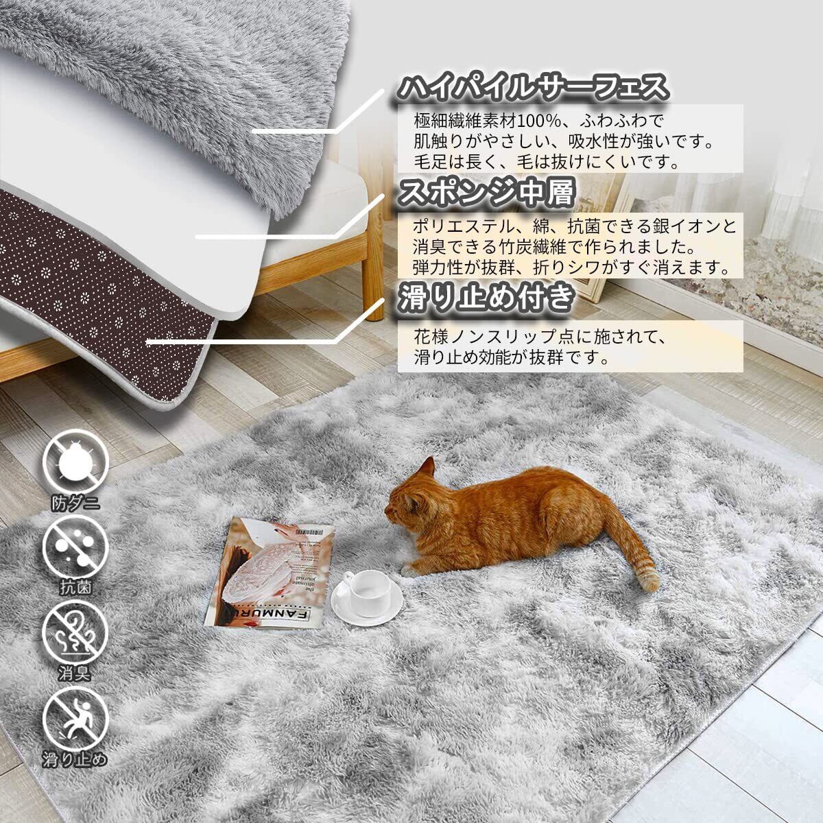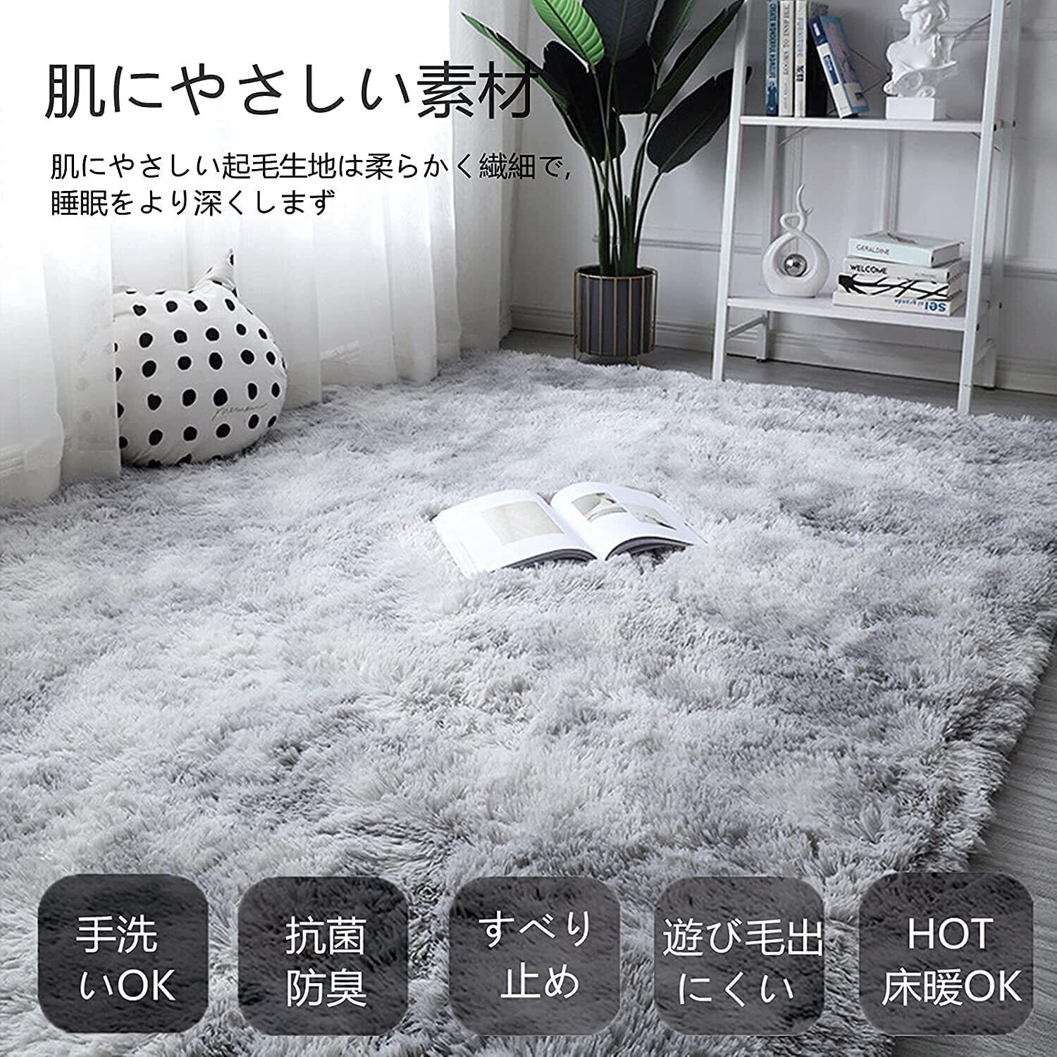 【ラグマット素材】-極細繊維素材100%で、ふわふわで弾力性にも優れています。ゴミや埃が絡ま難くて、掃除が簡単です。夏は冷房対策、耐熱合格の試験も実証されたので冬はホットカーペット・床暖房等に対応できます。