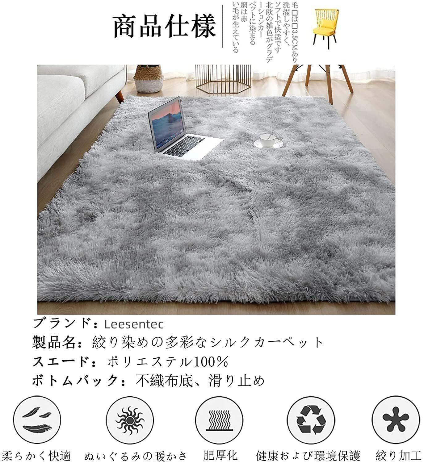 Leesentec カーペット ラグ ふわふわ 洗える ラグマット 北欧 滑り止め付き 防音 抗菌 防臭 毛長 冷房 床暖房対応 長方形 (80x120cm, ライトグレー)