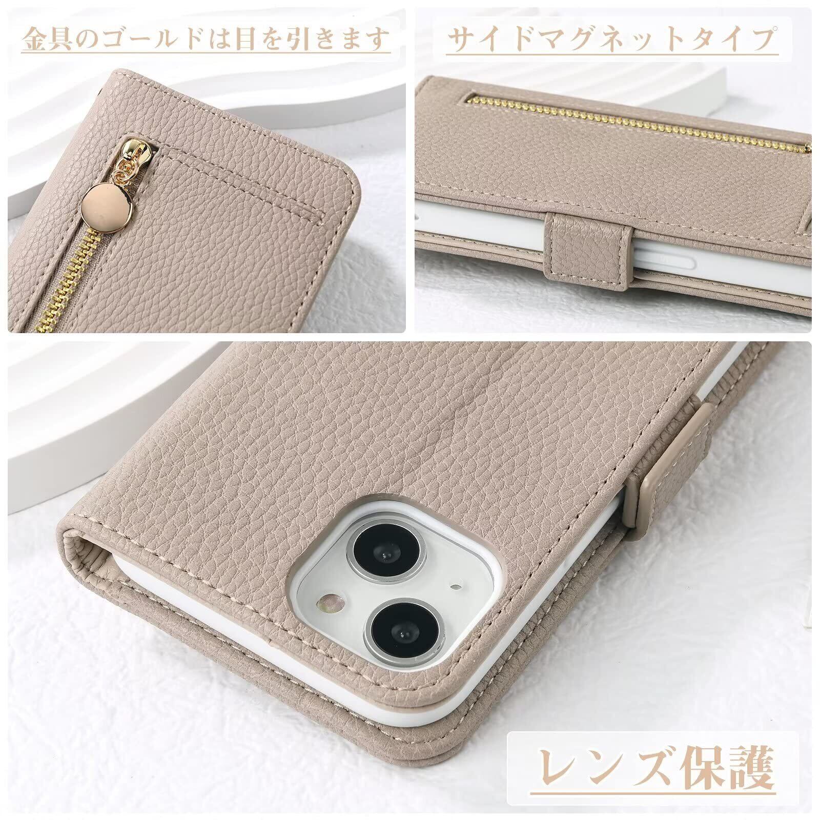 【収納スペース&スタンド機能】1.カード入は内側にあるだけではなく、ケースの表にもファスナーポケット1つ付きます。駐車券や名刺、お札、コインなどを収納でき、L型デザインは薄くて、物の収納ももっと便利になります。金属製のファスナーは長持ちでき、ゴールドとレザーケースの合わせはおしゃれ。2.スタンド機能:裏面を折り曲げれば横置きのスタンドに変われます。動画を心地良い角度で楽しめます。