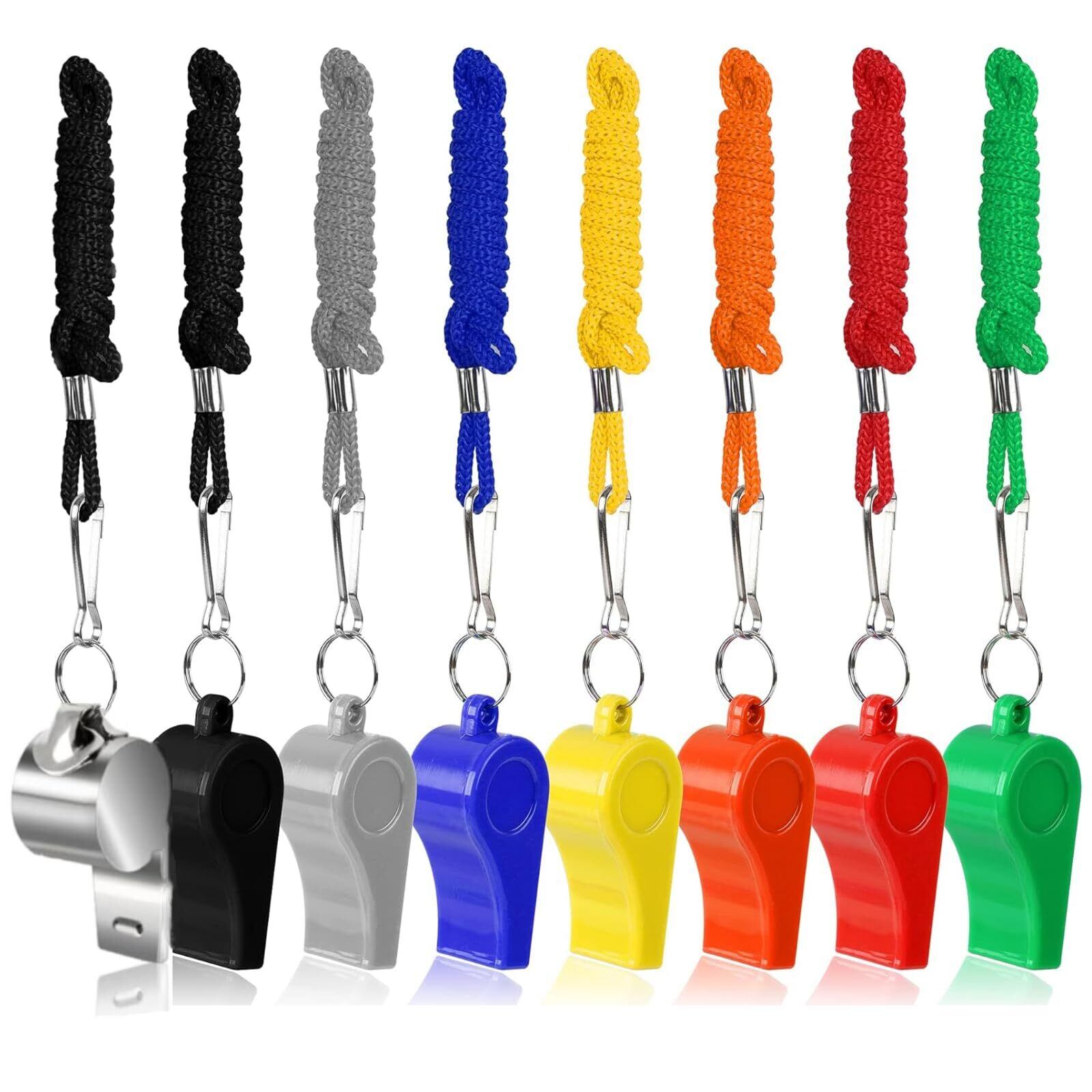 YFFSFDC ホイッスル8色8個入りコーチ審判 笛ストラップ付き 防災 救援緊急訓練 子供用 教師用 ライフガード学校 ジム キャンプ コンペティション用品