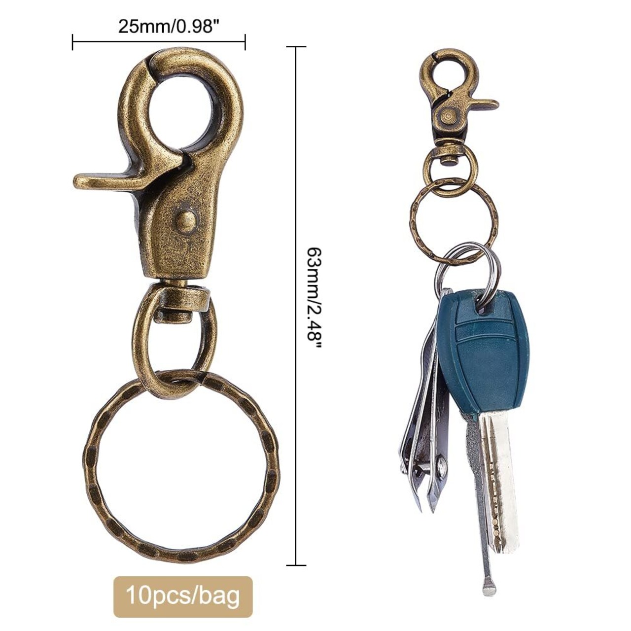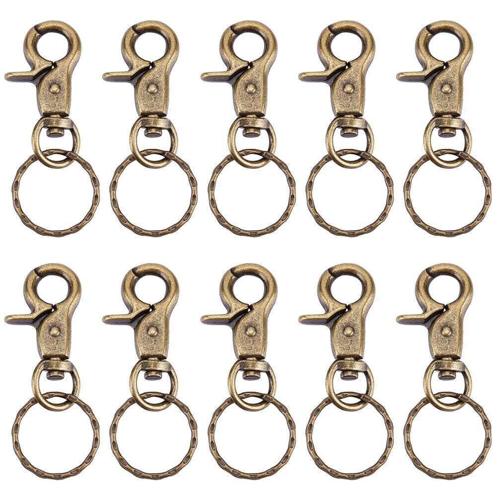 PandaHall 約10個/箱 63x25mm ナスカン キーホルダー 2重 リング付き 金具 パーツ DIY用 鉄製 アンティークゴールド 手芸用品 クラフト用品