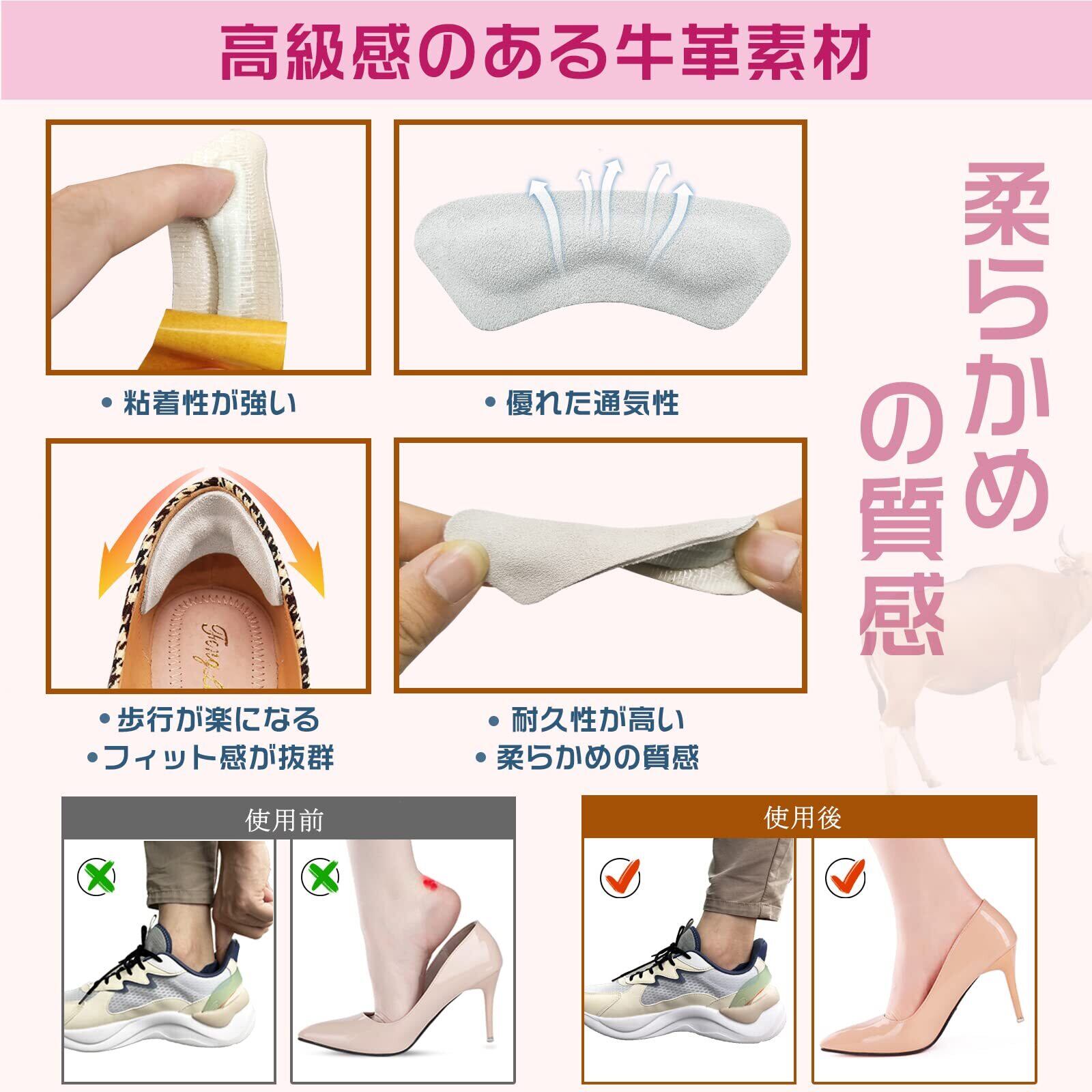 牛革 靴擦れ防止 くつずれ防止パッド かかと かかと パカパカ防止 靴 かかと脱げ防止 靴 サイズ調整 シューズ かかとパッド 靴かかとクッション 踵 痛み軽減 3足 3色厚さ8mm | BASE SHOP