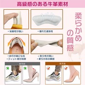【高級感のある牛革素材】柔らかいスポンジと高級感のある牛革素材を用いてパッドを制作します。柔らかめの質感ですが表面は特殊加工されており傷には強いです。市販より耐久性が高く、いつも新品のような状態をキープできます。また、靴のかかとのラインにフィットし、長時間履いても靴ズレしにくい!