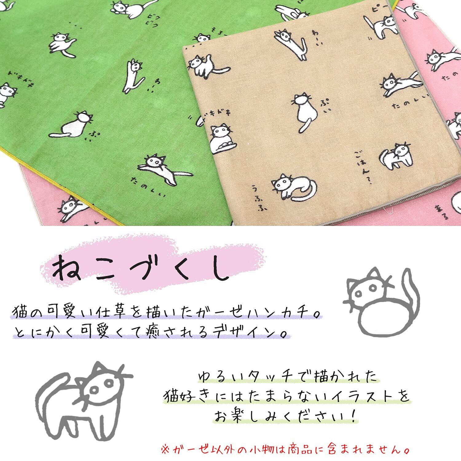 ガーゼハンカチ ねこ ほうじ茶 日本製 綿100% 35×35cm いろは まめおシリーズ