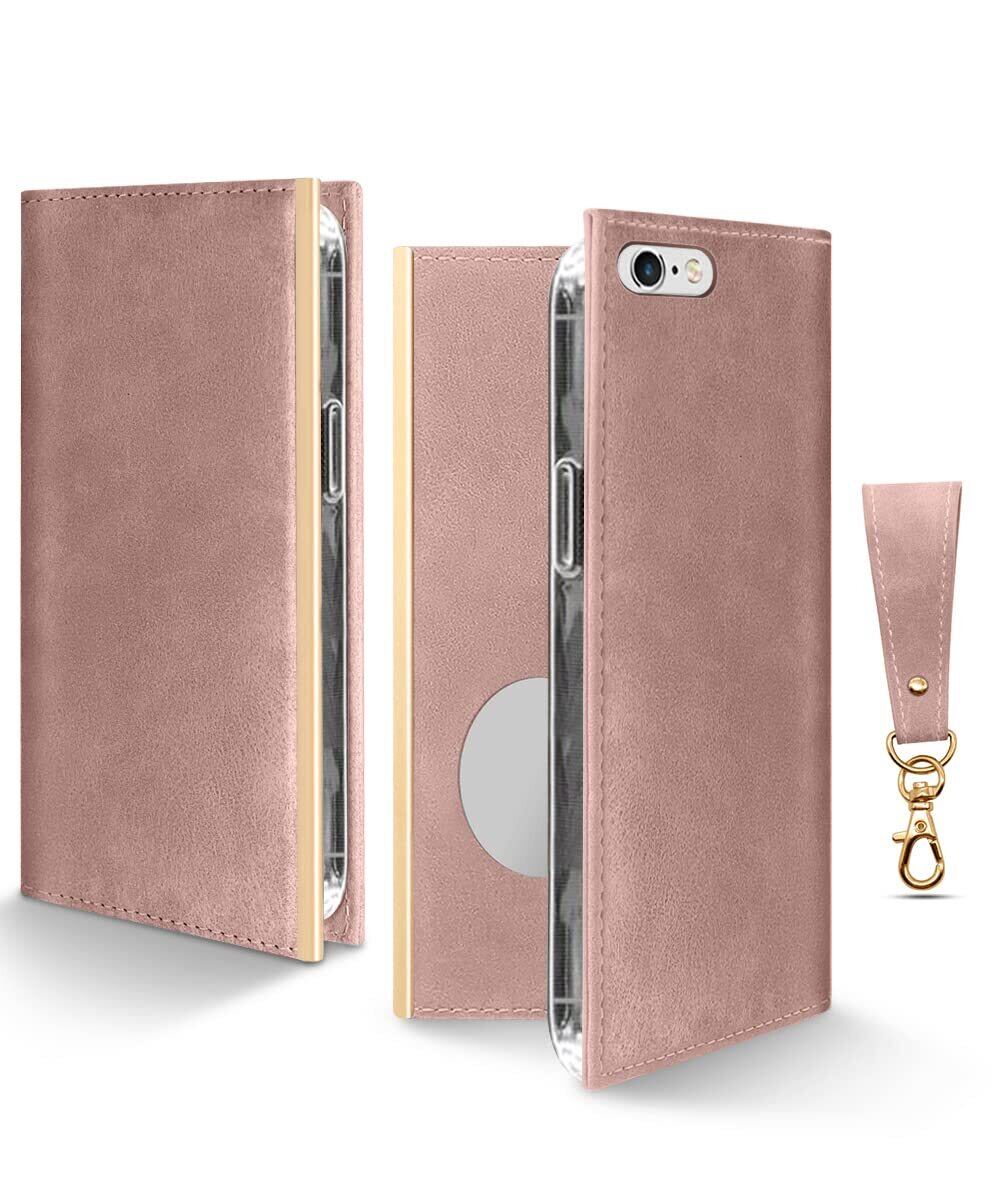 OCTERR iPhone 7 iPhone 8 iPhone SE 2(第二世代)ケース 手帳型 iPhone SE3 (第三世代)用スマホケース手帳型 アイフォン7カバー アイフォン8カバー アイフォンSEカバー 鏡付き マグネット式 スマホケース 財布型 手帳 カードポケット スタンド機能 携帯ケース ダイアリーケース PUレザー 女性 耐衝撃 全面保護 ファッション おしゃれ 美しい アプリコットピンク