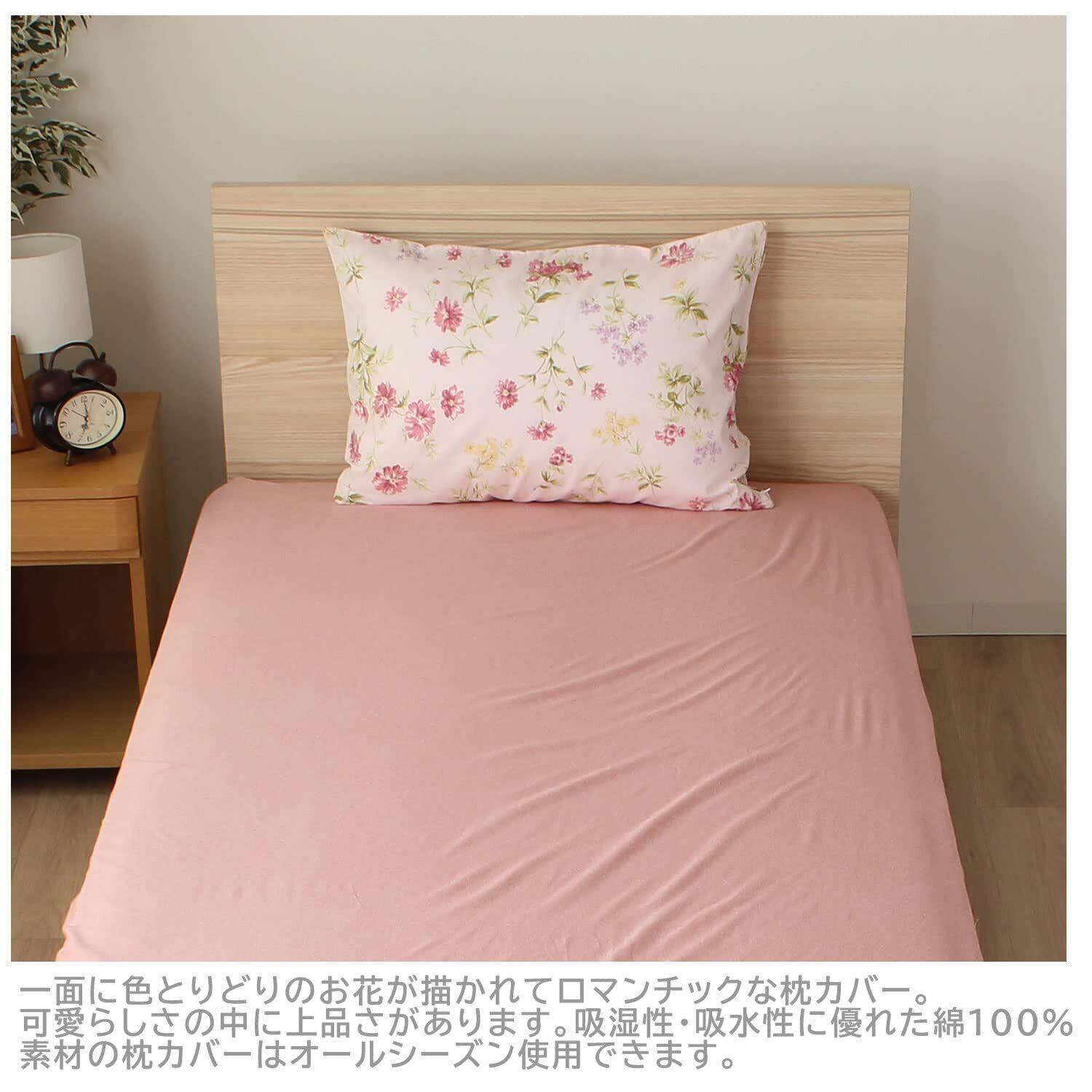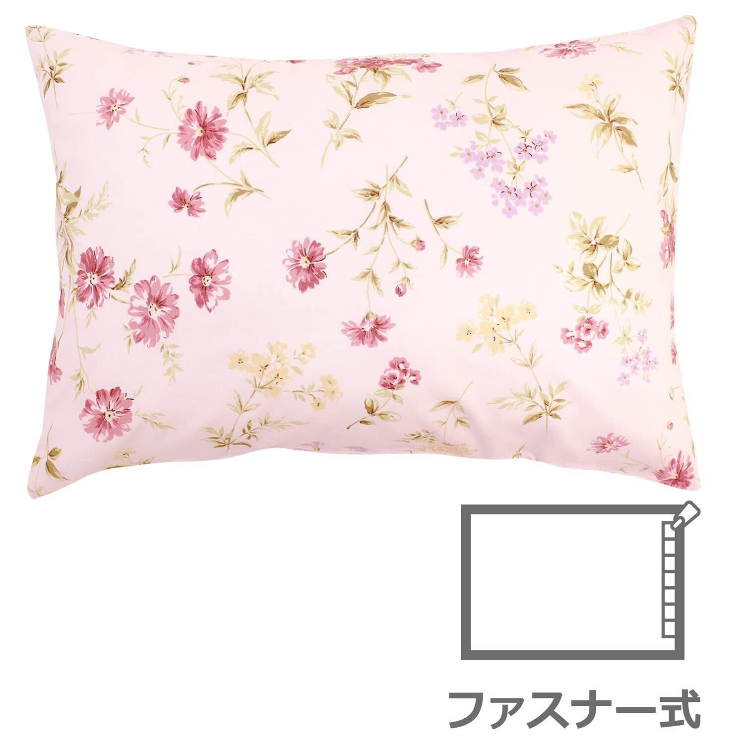メリーナイト(Merry Night) 枕カバー 「ボタニカルガーデン」 ピンク 約43×63cm ファスナー式 まくらが入れやすい 綿100% 心地よい肌触り オールシーズン 洗える FF16120-16 | BASE SHOP