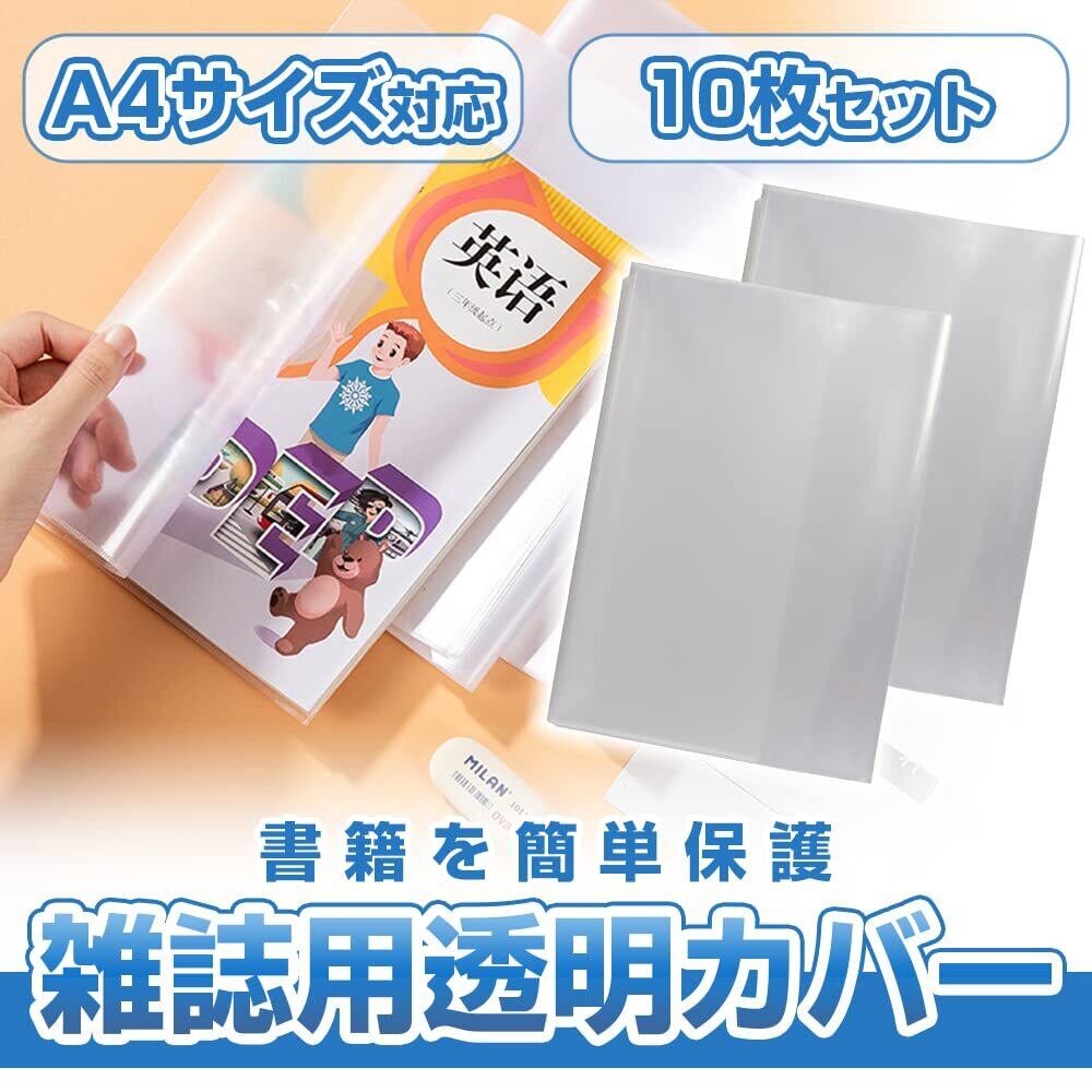 ブックカバー 保護シート 10枚セット 雑誌 テキスト 教科書 水濡れ 汚れ シワ防止 厚手 透明 (A4サイズ)