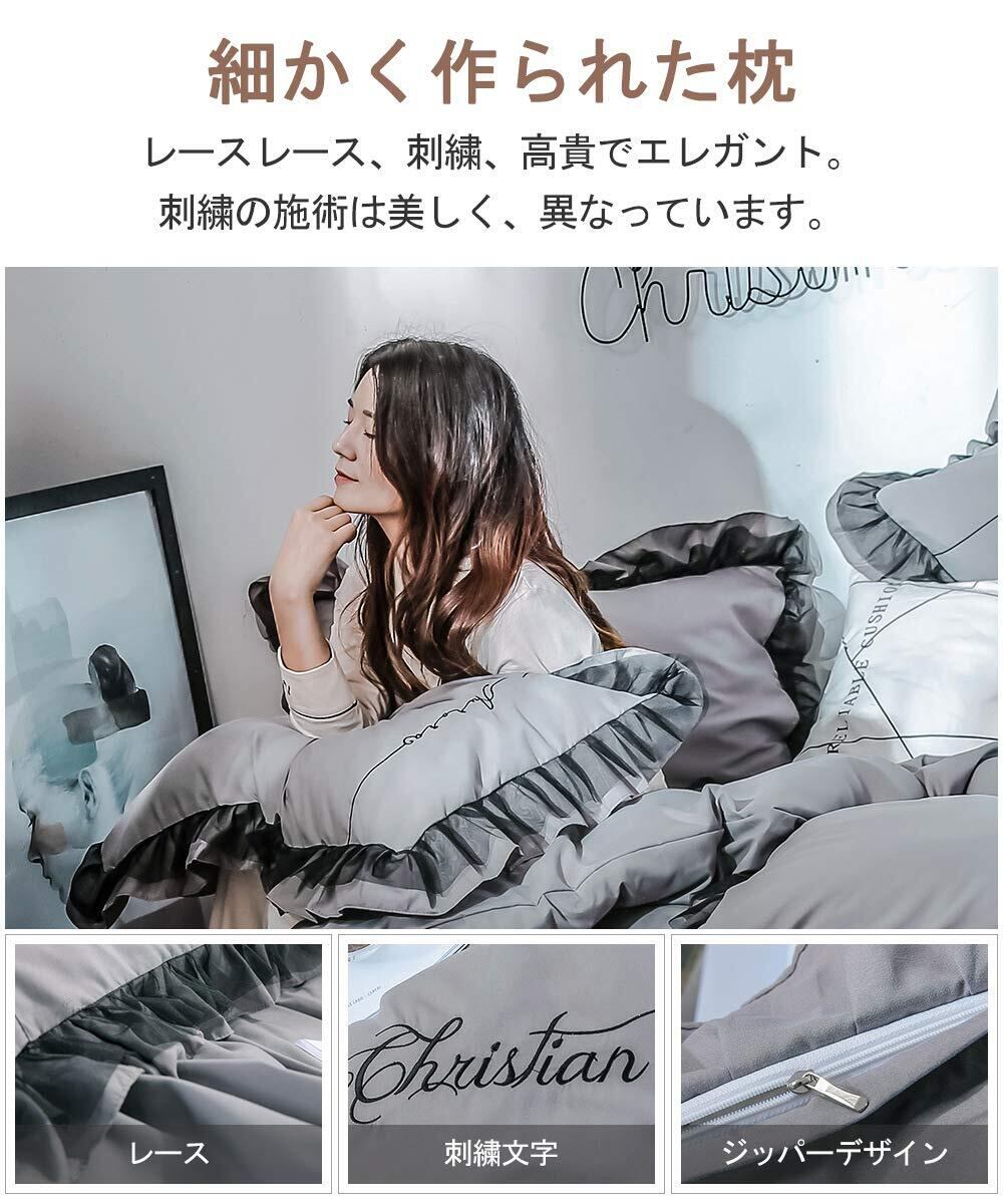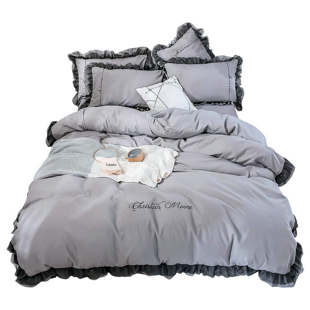 SowooHome 布団カバー シーツ 刺繍 蓮の葉 寝具カバーセット 掛け布団カバー ボックスシーツ 枕カバー ベッド用 布団用 洗い替え速乾タイプ(ライトグレー A11, シングル・3点セット)