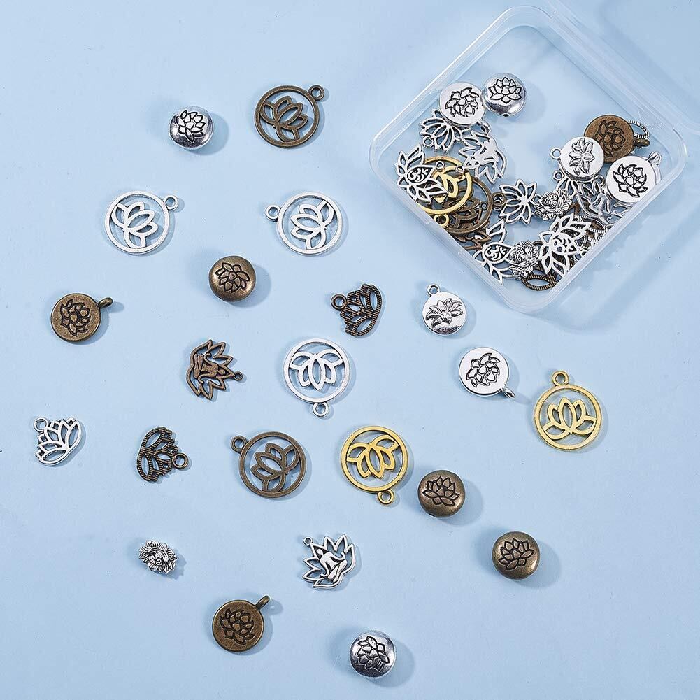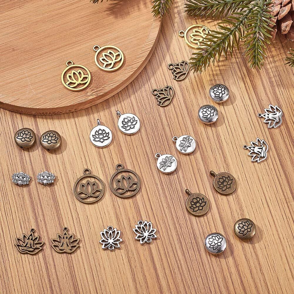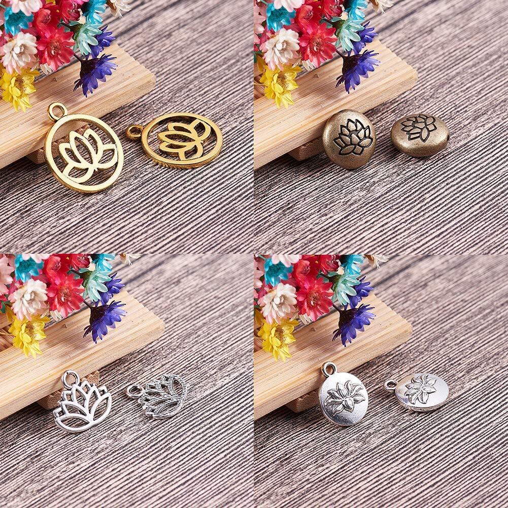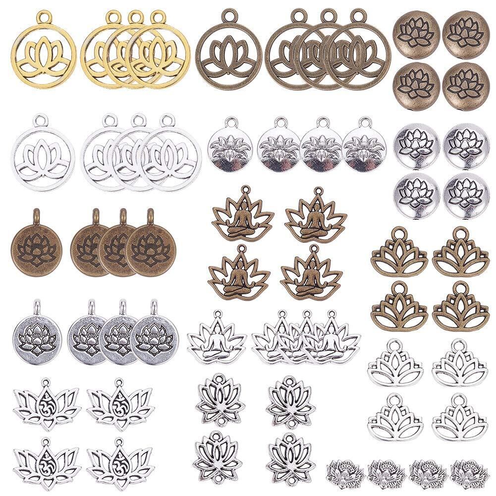 SUNNYCLUE 60個15種 チャーム ロータス ペンダント ヨガ ネックレス オーム 蓮の花 合金 オブ ライフ 蓮 チャーム チャクラ ヒーリング 仏教 パーツ エネルギー 透かし レイキ 癒し 瞑想 浄化 メタルビーズ チベット風 ブロンズ アンチック ヴィンテージ 銅古美 銀古美 チャームパーツ キーホルダー チョーカー ブレスレット アクセサリーパーツ 基礎パーツ ジュエリー作り レディース デコキット クラフト手芸 手作りキット DIY飾り物
