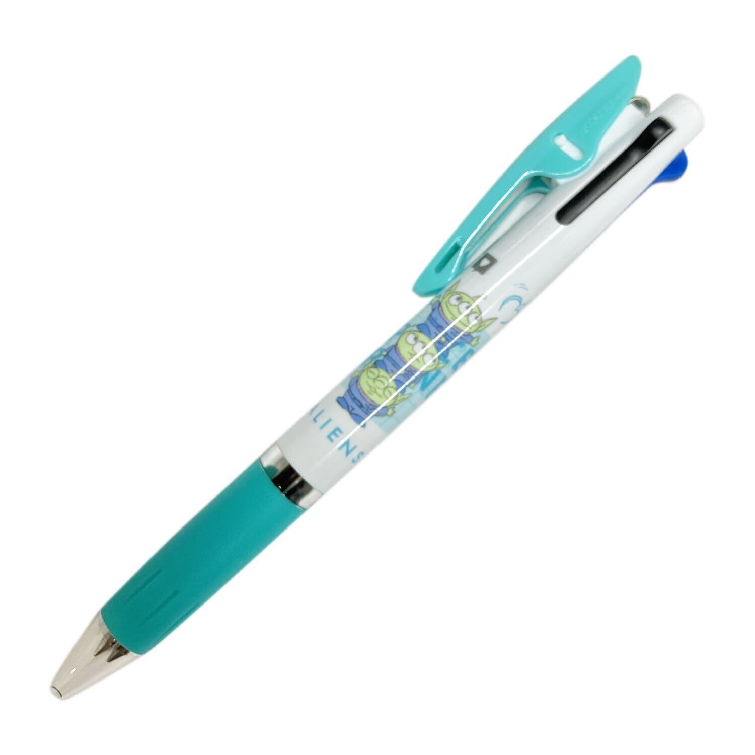 ジェットストリームは優れた速乾性を誇ります。その為、筆跡で手を汚しにくい仕様が人気です。またなめらかな書き心地も特徴の一つです。今回の商品はボールペン3色・黒・赤・青。トイストーリーのエイリアンデザインになります。
