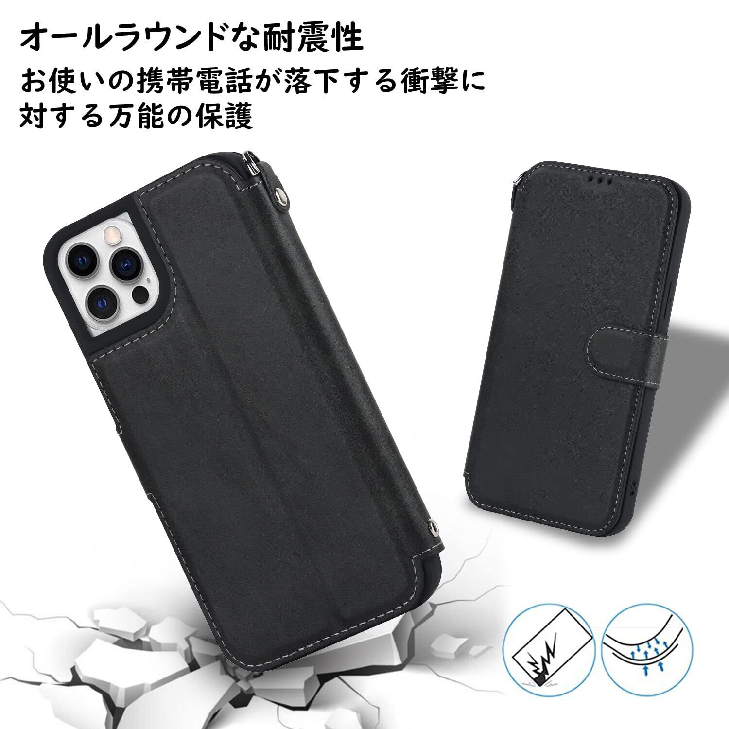 Havaya iPhone 12 Pro Max ケース iphone12プロマックスケース スマホケース 米軍MIL規格 軽薄 手帳型 ストラップ 耐衝撃 レンズ保護(アイフォン12プロマックス /あいふぉん12プロマックス/いphone12promax/アイホン12プロマックス 6.7インチ対応)-ブラック