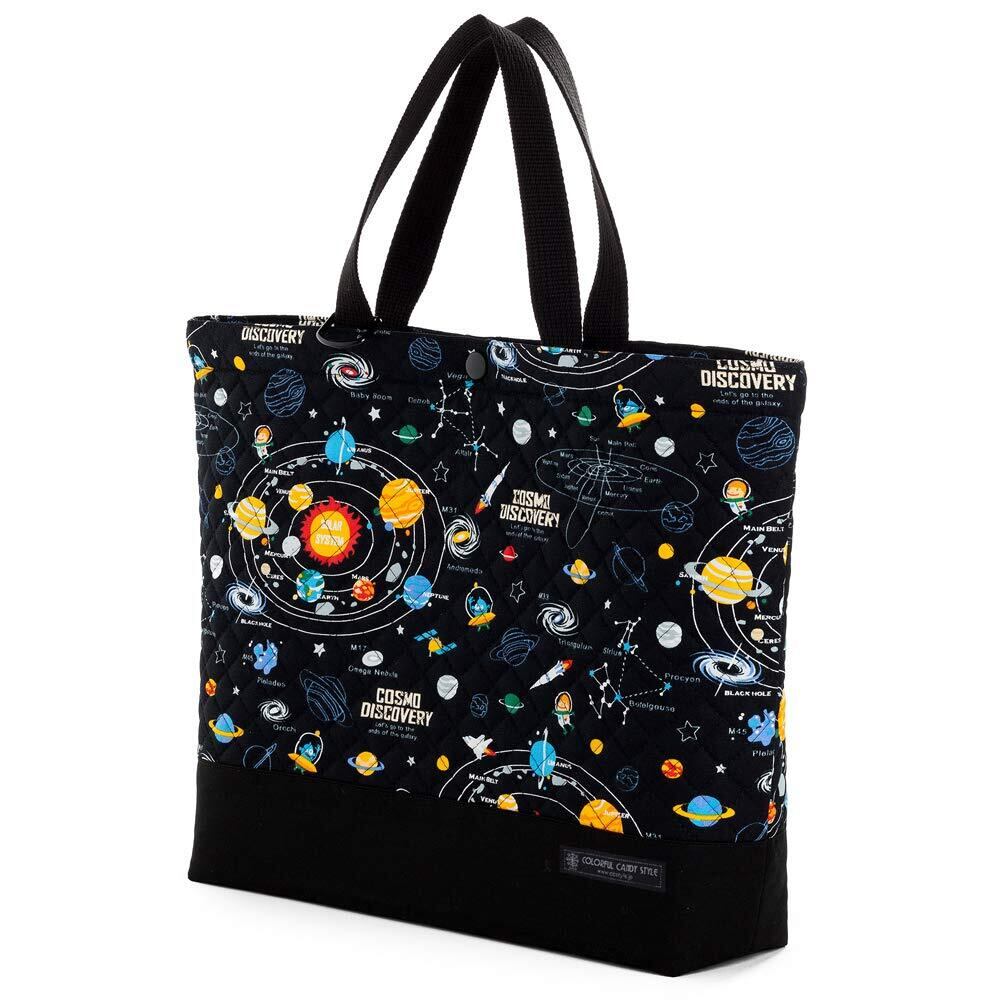 COLORFUL CANDY STYLE レッスンバッグ 男の子 マチ付き キルティング 手提げバッグ 絵本袋 トートバッグ 太陽系惑星とコスモプラネタリウム(ブラック) N7805600 | BASE SHOP