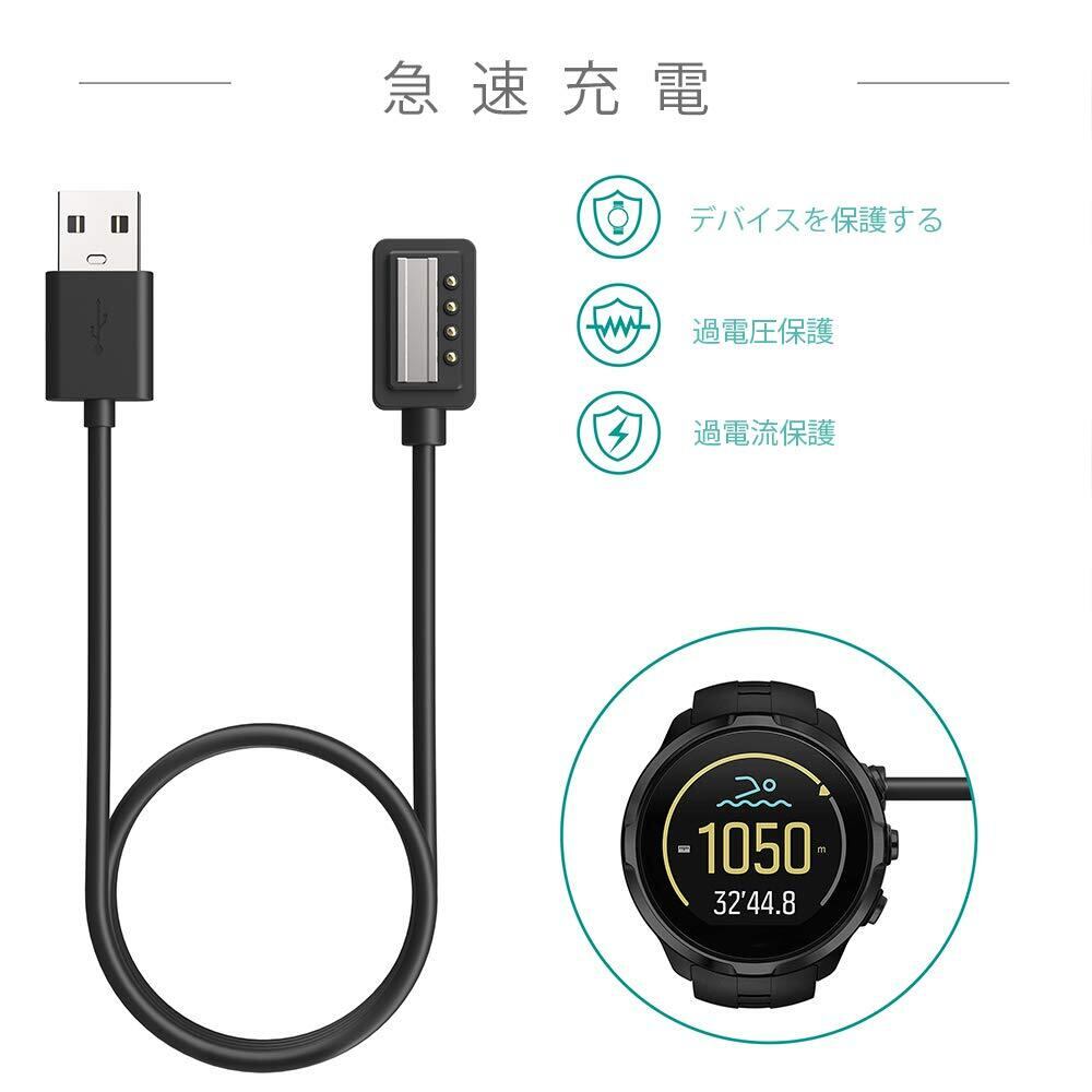 TUSITA対応:スント充電ケーブル Suunto 9 / Spartan Sport Wrist HR/Spartan Ultra HR/Suunto D5 / Suunto EON Core 充電 - 100cm USB磁気充電器-トレッキングGPSスマートウォッチアクセサリ