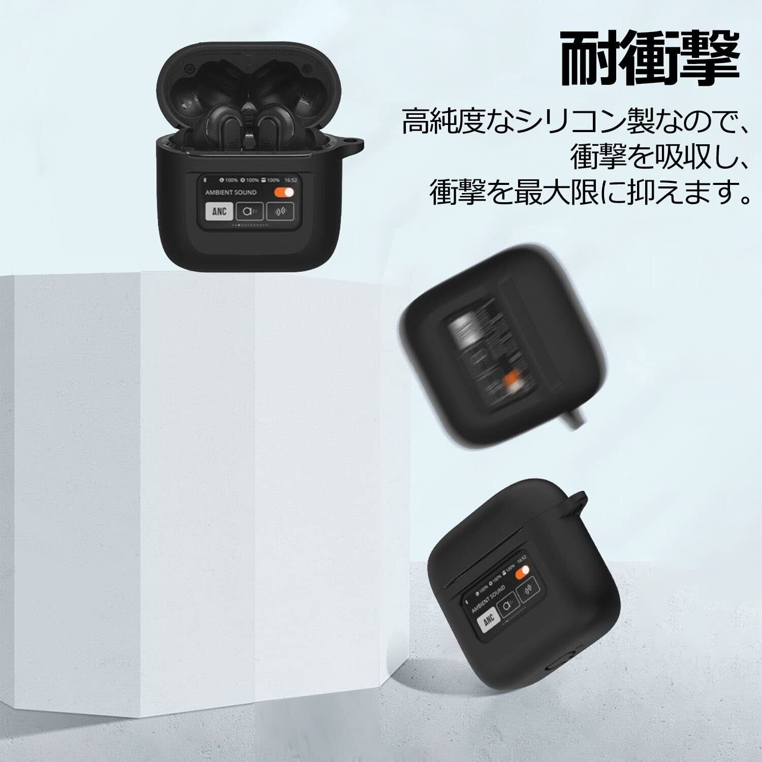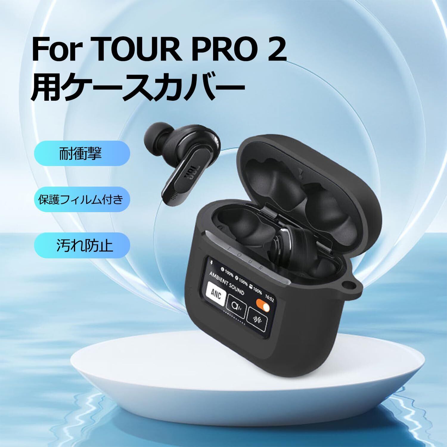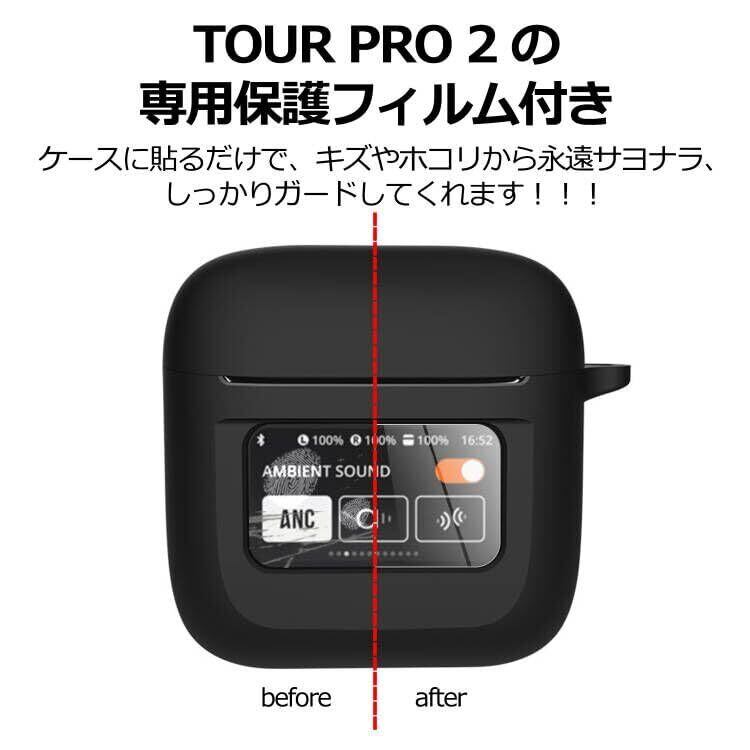 LIRUWECH For JBL TOUR PRO 2ケースカバー 【JBL TOUR PRO 2フィルム*3 付き】シリコン製 全面保護 落下防止 キズ防止 耐衝撃 装着充電可能 軽量小型 カラビナ付き (ブラック)