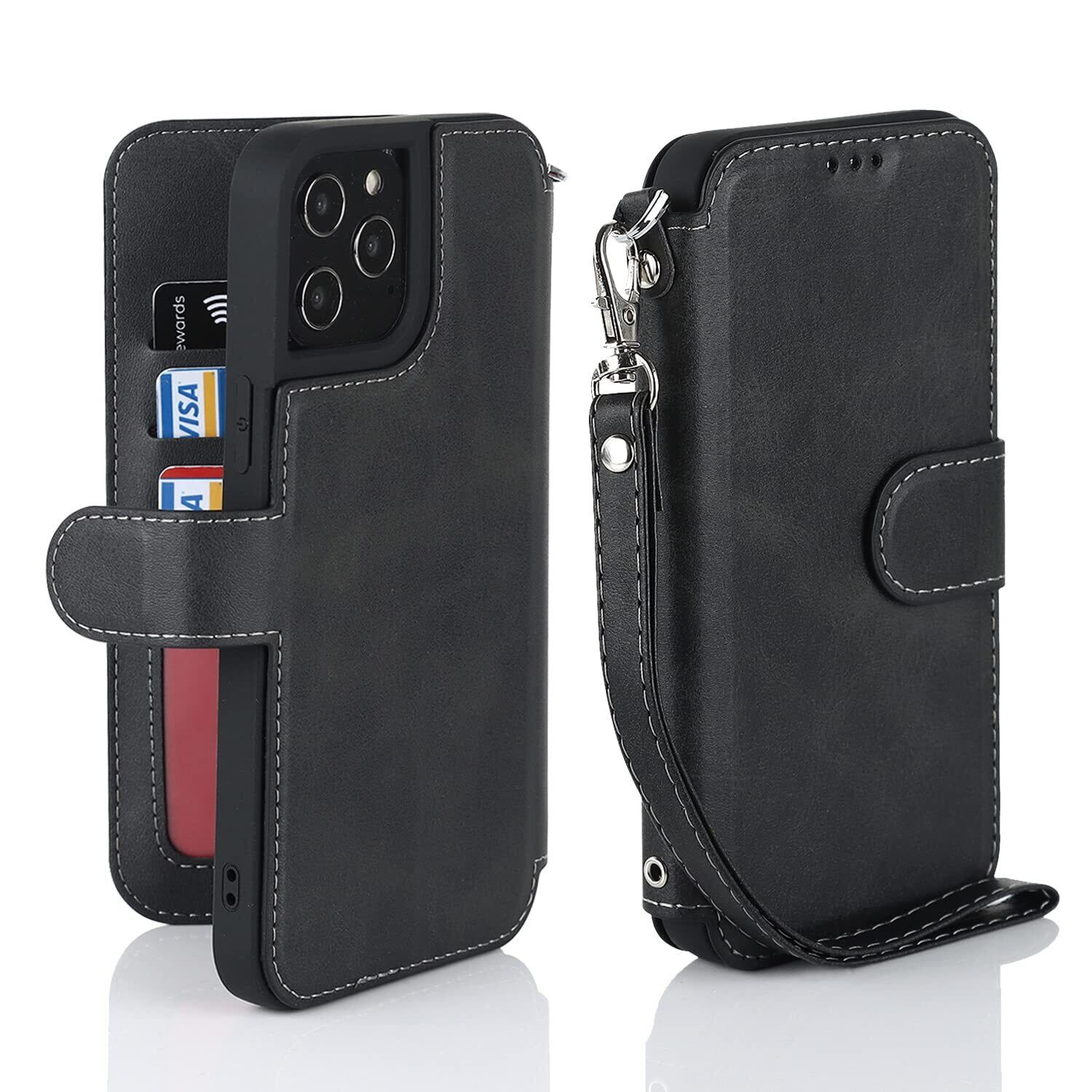 Havaya iPhone 12 Pro Max ケース iphone12プロマックスケース スマホケース 米軍MIL規格 軽薄 手帳型 ストラップ 耐衝撃 レンズ保護(アイフォン12プロマックス /あいふぉん12プロマックス/いphone12promax/アイホン12プロマックス 6.7インチ対応)-ブラック