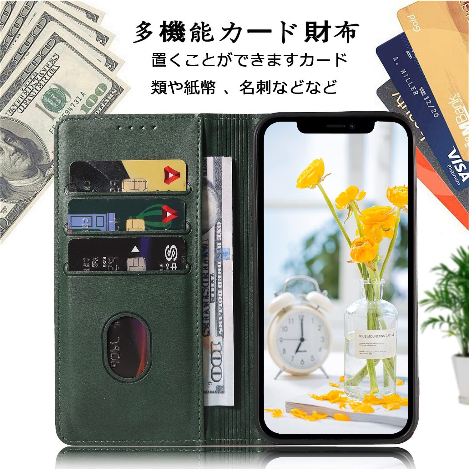iPhone12 ケース iPhone 12 PRO ケース イフォン12/12 PRO ケース スマホケース 手帳型 携帯カバー レザー 耐衝撃 軽量 着脱しやすい 放熱性 マグネット式 カード収納 スタンド機能 iphone ケース12/12 PRO 対応 360度保護 PinLiSheng (グリーン, iphone12/12pro) | BASE SHOP