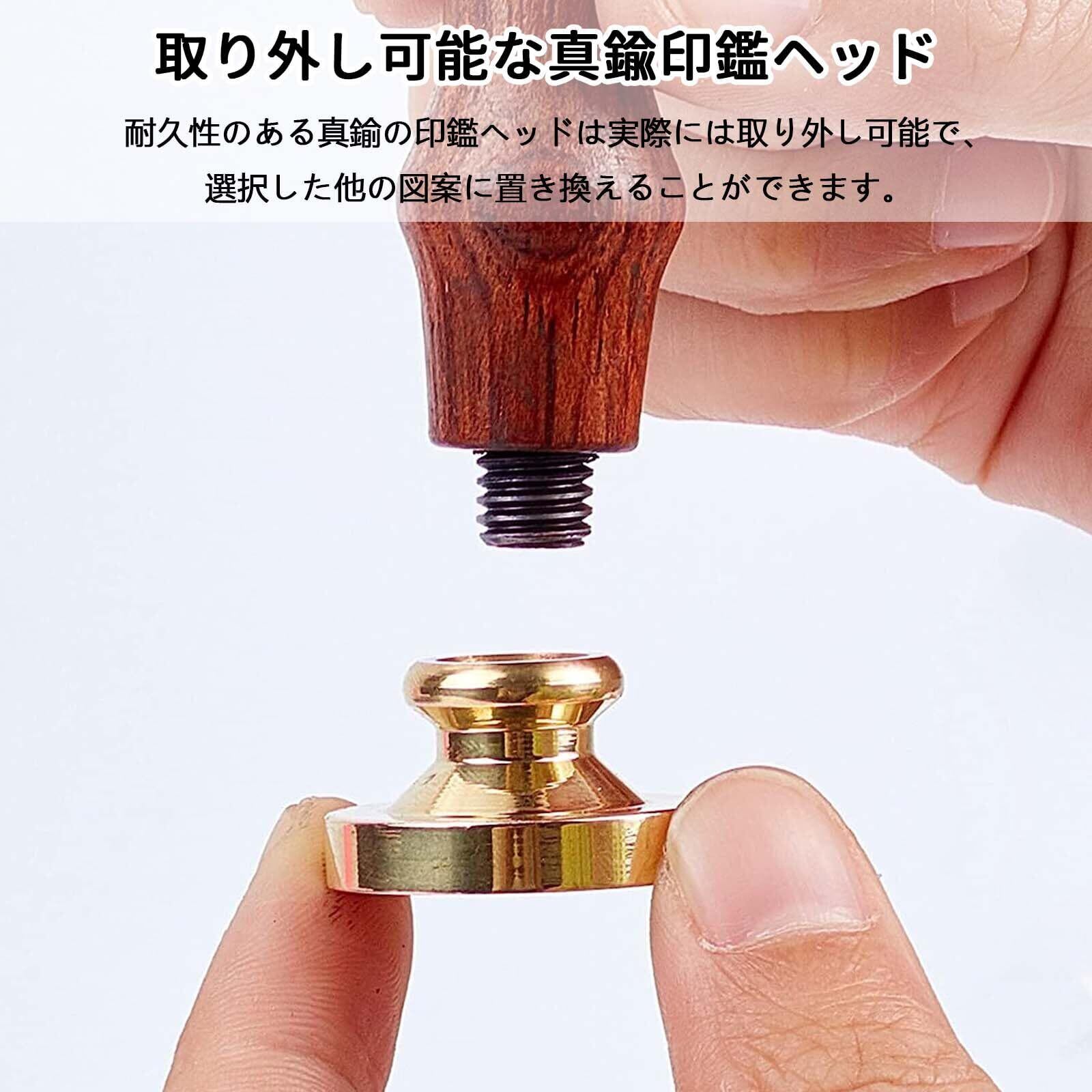 【入れ換え可能のスタンプ】こちらのシーリングスタンプ ヘッドはネジ式なので、簡単に取り外したり取り付けたりことができます。ヘッドを入れ換えるだけで、自由にお好みのパターンを作成することができます。