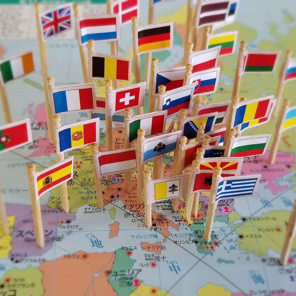 インデックスのように挟み込んで使うことができ、表が国旗、裏が国名になっている