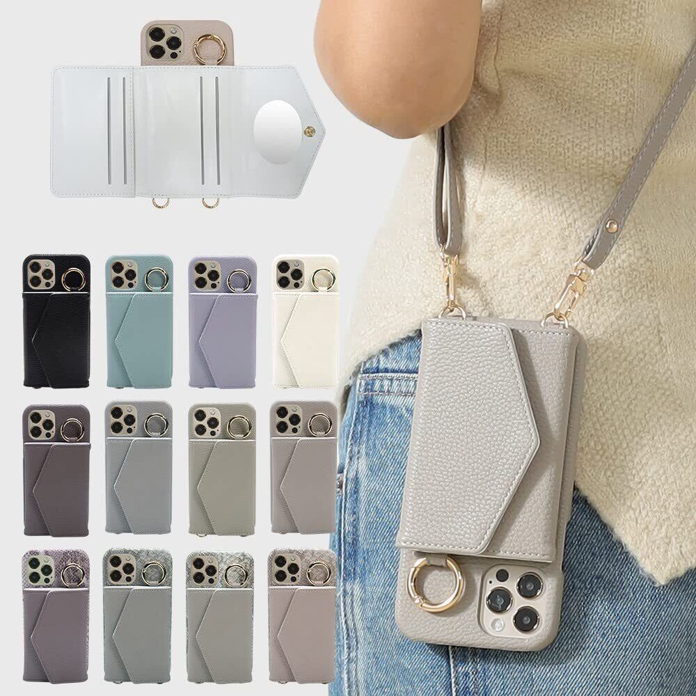 LIISEA iphone6/7/8/SE2/SE3 第2世代 第3世代 スマホケース ショルダー タイプ 携帯ケース 背面手帳型 背面カード収納 鏡付き 肩掛け 斜めかけ リング付き ミラー付き カード収納 背面ポケット 財布付き マグネットなし レザー 分体式 ショルダーストラップ付き