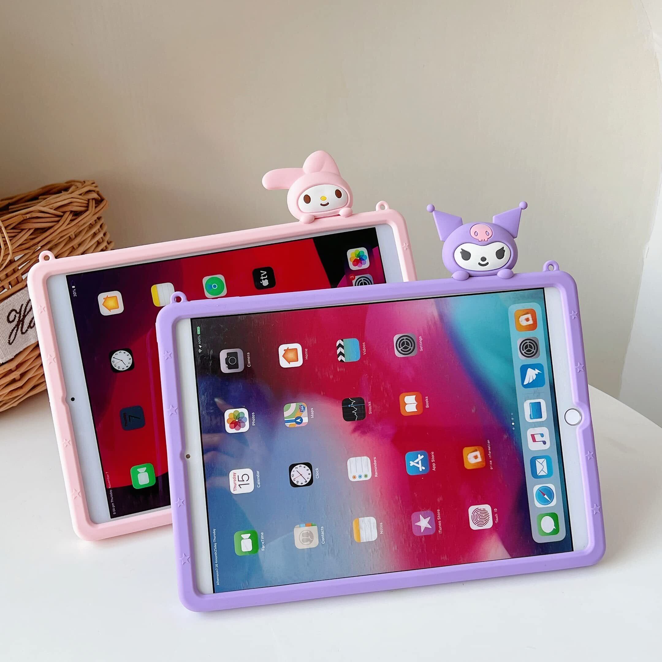 CrazyLemon 適用 iPad Air 2 ケース iPad Pro 9.7インチ 2016 ケース 可愛い アニメ パープル うさぎ 人形 デザイン ショルダー ストラップ スタンド機能 付き 薄型 軽量 ソフト シリコーン アイパッド 保護ケース 耐衝撃 カバー 女性/女の子 大人/子供 人気