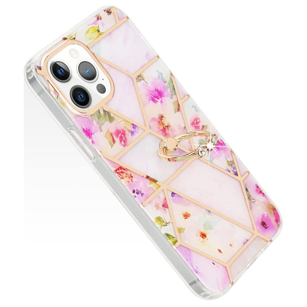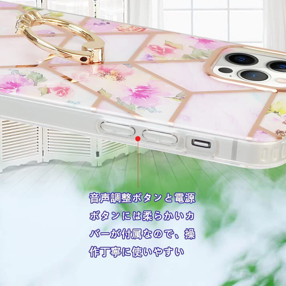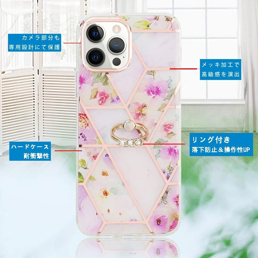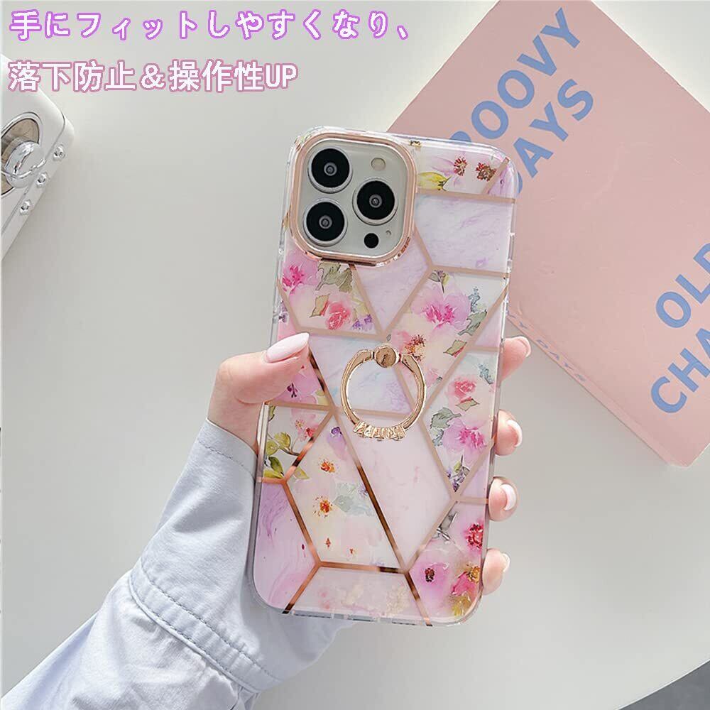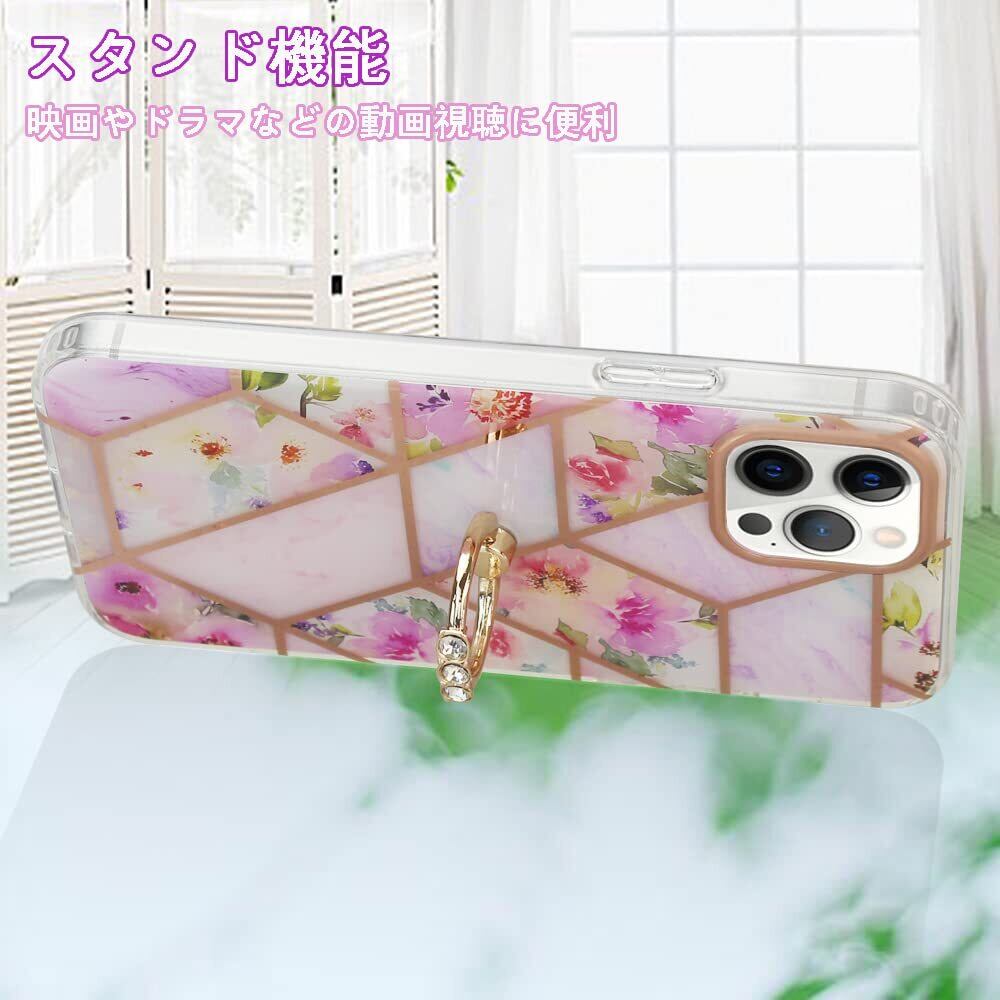 YUYIB iPhone 14 Pro Max ケース アイフォン14 プロ Max カバー リング かわいい 花柄 ハードカバー ディズニー おしゃれ キャラクター 女性人気 耐衝撃 スマホケース (iPhone14 Pro Max 6.7", ピンク-花)