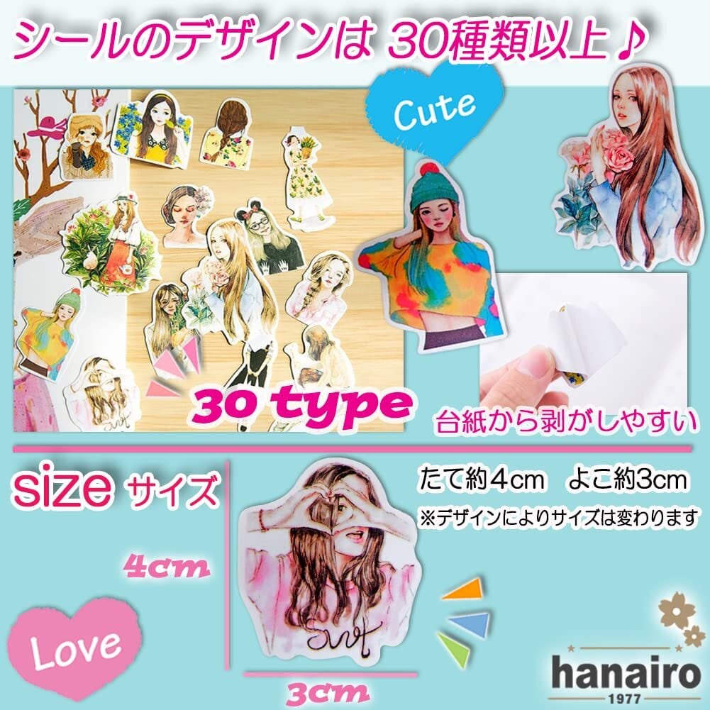 hanairo フレークシール 大量100枚セット 手帳 日記 アルバム 手作り シール ステッカー おしゃれ (少女)