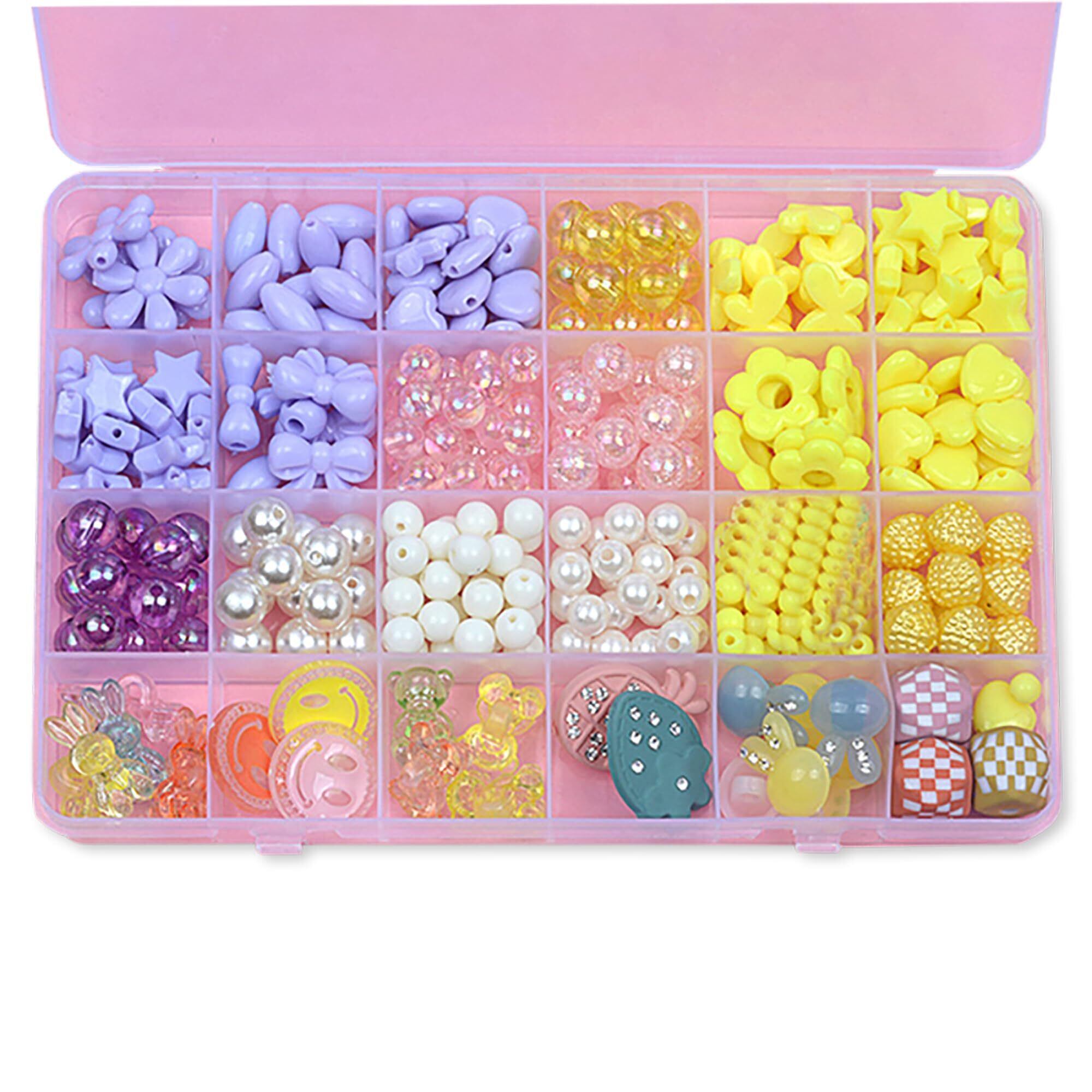 AAGWW 24グリッド 子供用 手作りビーズ DIY ビーズを通す 散らばったビーズ 女の子 手首飾り作り 虹を持たない(デザイン:24格の子供用手作りビーズセット—— Dタイプ、約500個)